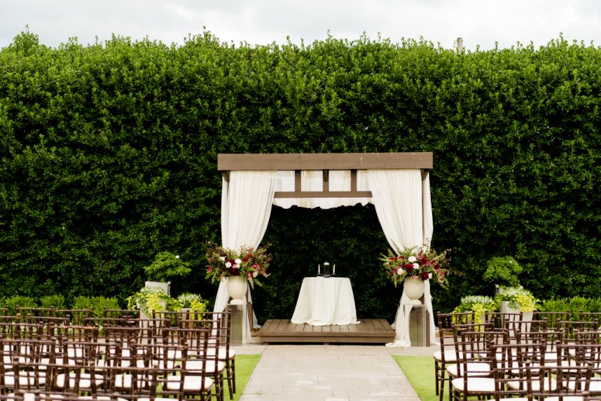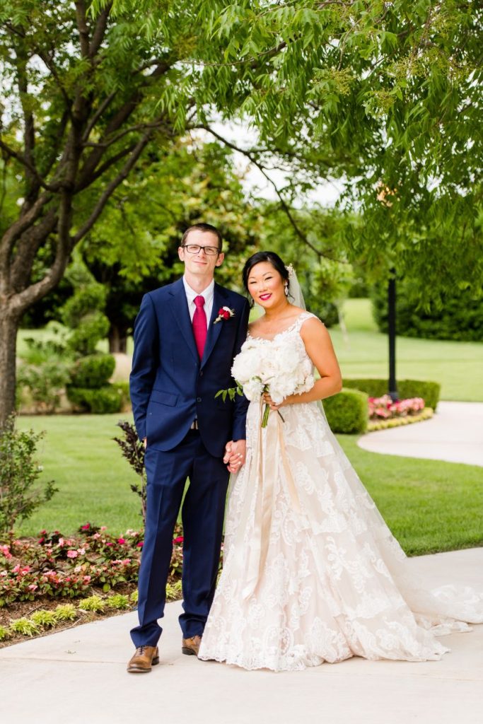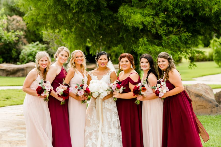 After nine years of dating, Annie and Tyler finally tied the knot with their modern glam wedding at Coles Garden on June 15, 2019! Annie and Tyler’s wedding was full of so many incredible Oklahoma vendors; Holly Gannett Photography was there to capture all of their sweet moments, June Sixteenth curated the most beautiful burgundy and blush florals, C2 Catering provided the yummy food and drinks, and Marianne’s Rentals Special Event Solutions provided all of the stunning decor and rentals. Annie even gave her hubby a romantic wedding day gift of boudoir photos from Kristina Gaines Boudoir Photography! The bride looked gorgeous in her lace wedding gown from Bella Rose Bridal, accompanied by her bridesmaids in their burgundy and blush dresses from Prim – and they were all glammed up from the wonderful Lexi Faught Hair and Makeup. Cheers to Annie and Tyler!