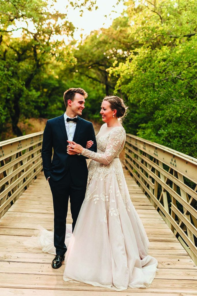 The couple had been dating long distance for more than a year and a half when Alex decided it was time to propose. Lise’s flight landed in Wichita, Kansas where Alex was living and she was greeted by a full jazz band. The band serenaded Lise to “Everything” by Michael Buble. Alex appeared and unraveled a set of giant posters that described their relationship. At the very end, Alex got down on one knee in the middle of the airport and proposed.