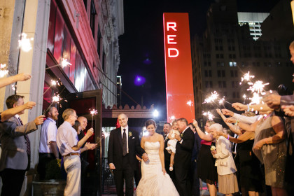 After a delicious buffet of Red PrimeSteak favorites, the couple and guests enjoyed the incredible cakes and danced the night away with the help of Jesse at DJ Express. Guests also enjoyed the BotBooth and took home keepsake pictures. The fun night ended with a dance to “You’re My Friend” by Queen and a sparkler exit.