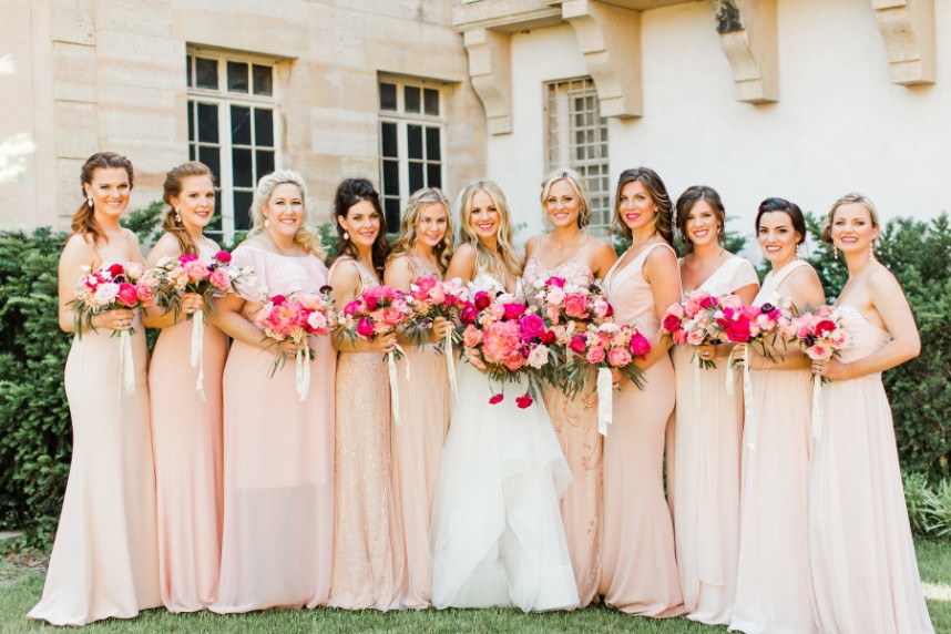 If you’re a pink loving bride then you’ll have ALL the heart eyes for this modern pink Oklahoma wedding! Amie and Geran’s celebration is filled to the brim with our favorite rosy hue, from the fabulous festive florals by Ever Something to the beautiful blush bridesmaid gowns from Prim, Sarah Libby captured all the prettiness planned by Nicole Allen Events! Enjoy!