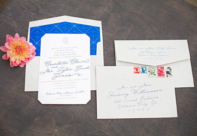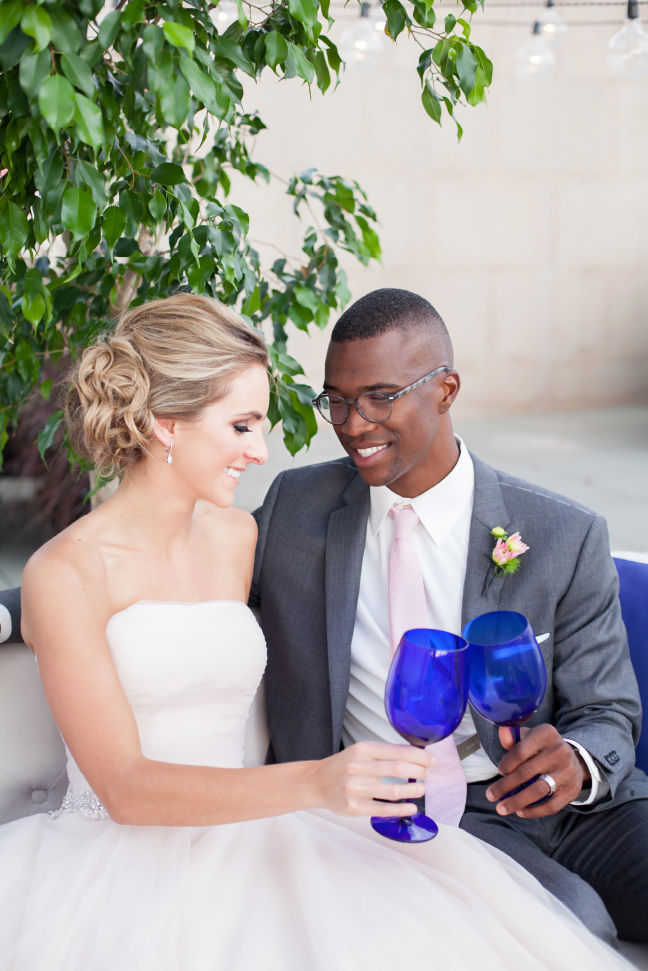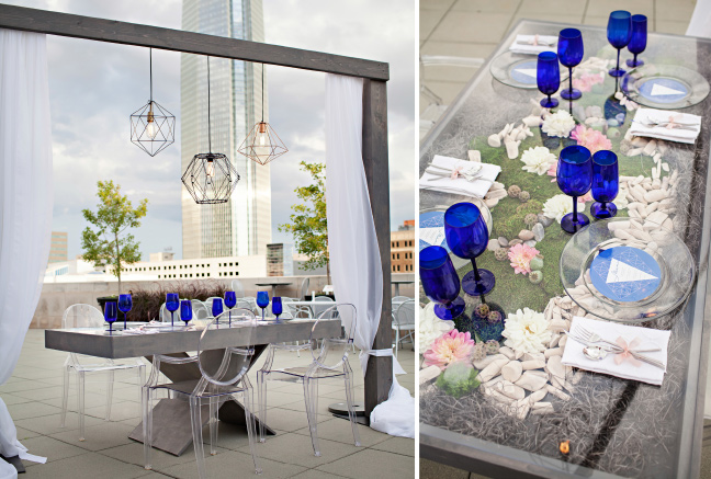 We’re absolutely blown away by this modern rooftop wedding inspiration from Oklahoma wedding planner Leslie Herring Events. Captured by Kristen Edwards Photography at Oklahoma City Museum of Art, the neutral tones and natural elements blended with geometric shapes and pops of gorgeous sapphire are rooftop wedding perfection. The florals from Trochta’s Flowers and Garden Center are completely stunning, as are the oh-so-adorable invitations and paper elements from Touies Design. How about that delicious wedding cake from Amy Cakes? Yum! The lighting from Innovative Event Solutions is a must for a celebration under the stars, and rentals from Mood Party Rentals set a positively gorgeous scene. Let’s talk about the fashion! The bride’s classic gown can be found locally at The Bridal Boutique, and the trendy little bridesmaid skirt and bustier can be found at Prim. Top it all off with some jewelry from Lewis Jewelers and hair and makeup from blo. and the perfect bridal look is complete! To see more from this dazzling rooftop soiree, catch the behind-the-scenes video from Redeemed Productions. Cheers!