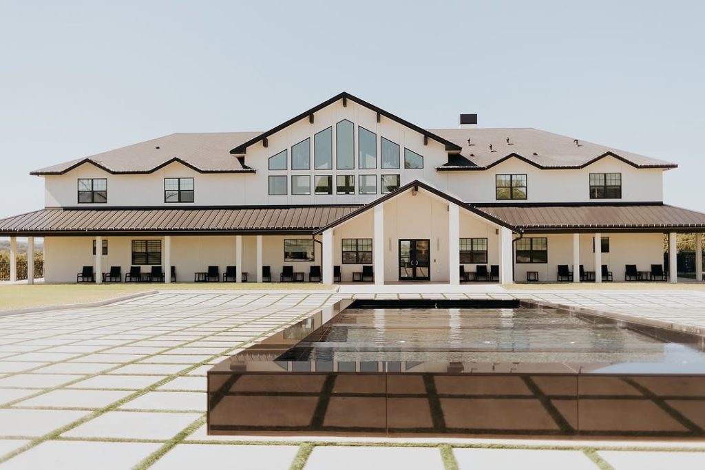 A quick one-hour drive west of Oklahoma City, you’ll find the beautiful country estate of Sorelle – The Meadow on Deer Creek. This black and white wedding venue is perfect for couples looking for a minimalist venue design that can be dressed up to suit any style or aesthetic. With multiple outdoor and indoor ceremony areas and a beautiful reception space, Sorelle also features luxury amenities, like a bridal cabin, groom’s suite, wine cellar and more!
