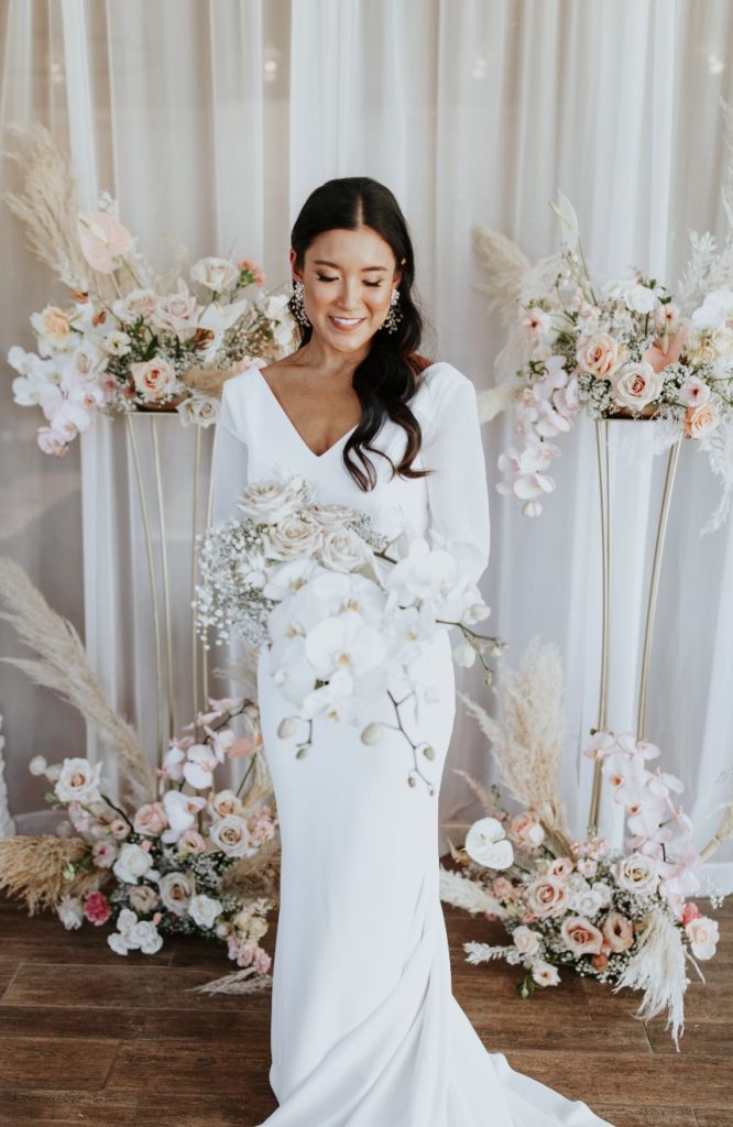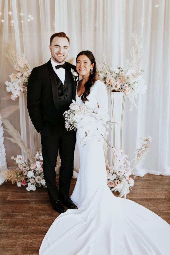 This modern whimsical winter wedding at Coles Garden Wedding and Event Center was truly what dreams are made of! We are totally swooning over Danielle Chin and Ethan Acock’s wedding day. The stunning florals from XO by Haleigh Kenney were a true statement from the Acock’s big day and they paired perfectly with the pieces from Marianne’s Rentals. Danielle looked like an absolute stunner in her bridal gown from Chantilly Couture, and we know you’ll be just as obsessed with her first look story as we are – scroll to read the bride’s take on the sweet moment! Their reception was chock-full of a dream team of vendors – from Abbey Road Catering to Amy Cakes to Box Talent, the newlyweds and their loved ones got to enjoy a delicious meal, cake and then dance the night away! The entire day was captured flawlessly by the oh-so-talented KGC Photography, and we already know you’re going to in love with their big day! Cheers to Mr. and Mrs. Acock!