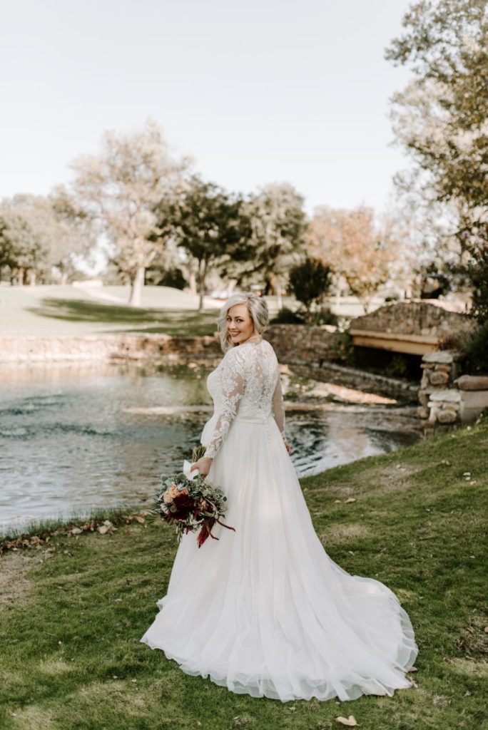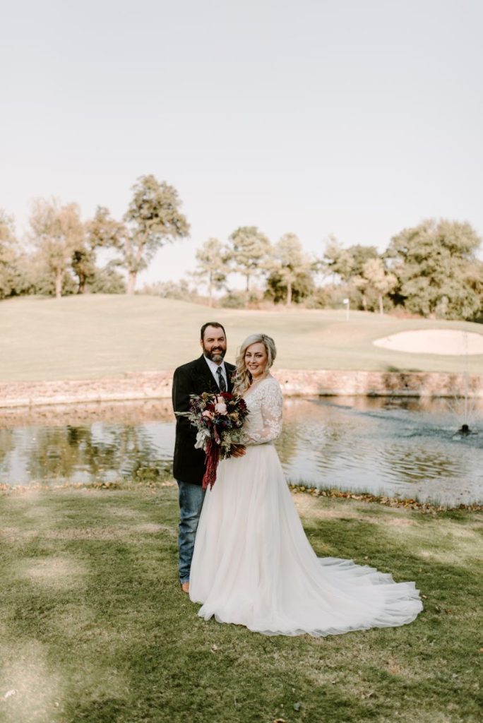From the bride on her most helpful vendor: “Ryan Fossett and his staff at Enid Floral & Gifts were an absolute dream to work with. From beginning to end, they made our wedding dreams come true. I wanted romantic and chic with a sense of bohemian whimsy and Enid Floral went above and beyond. The stunning colors, unique flower arrangements and mercury glass candle votives created an overwhelmingly beautiful evening. My husband built our arbor for the ceremony and the Enid Floral team brought it to life with breathtaking florals and pampas grass.”