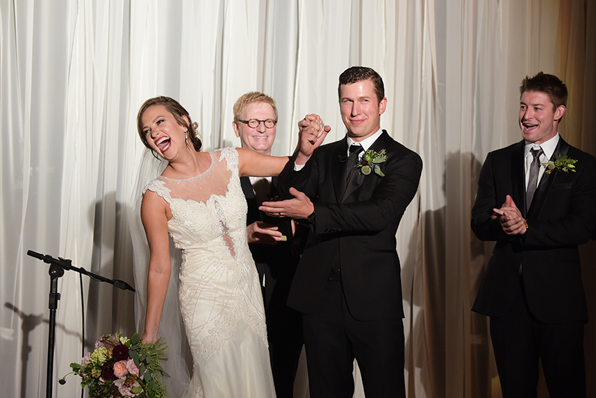 A gorgeous bride, a striking groom, a stunning Oklahoma City skyline and a romantic theatre venue – what more could you ask for?! Jessica and Matt’s moody jewel tone wedding planned by Gibson Events has set all kinds of standards with precious traditional sentiments and equally trendy modern decor. The bride, Jessica, was ravishing in her Anny Lin Bridal gown from Meg Guess Couture Bridal & Boutique. Chelsey Ann Artistry and her team created a romantic updo and flirty makeup to complement the look. From Marianne’s Rentals gorgeous furniture to Abbey Road Catering’s delectable spread of sweet and savory bites to the navy and turquoise ombré Brown Egg Bakery cake, the Smith wedding was truly a night to remember! See the video below to view Pen Weddings’ wedding highlight video, capturing this couple’s truly indescribable love. Enjoy!