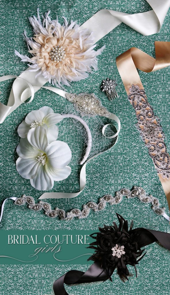 We can’t get enough of Bridal Couture Girls‘ fab wedding day accessories! With so many options to choose from, you’re sure to find the perfect addition to your wedding day look! We were thrilled to feature some fabulous pieces from their collection in the latest issue of Brides of Oklahoma. Some of our favorites include this handmade bridal belt with black feathered flower with crystal center on a satin ribbon and this pearl and silver beaded leaf-shaped bridal sash/belt — too cute! Be sure to browse all of their fab accessories online! Enjoy!