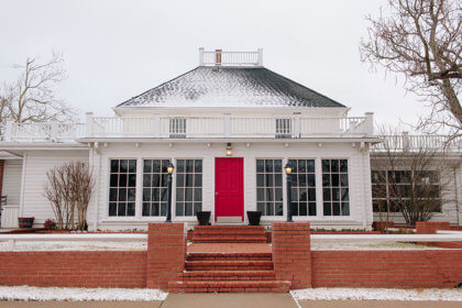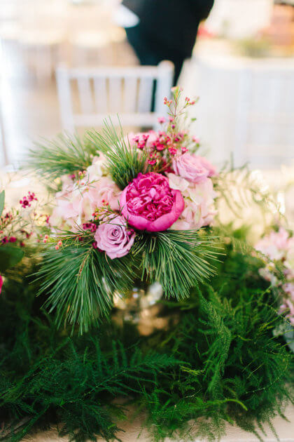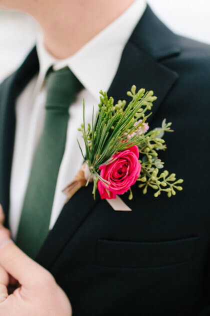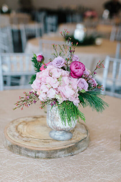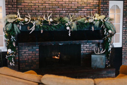 Their January wedding ceremony was at the Chapel at Crossings Community Church, followed by a reception at The Manor at Coffee Creek. The wedding had a natural, rustic theme that included aspen tree slabs freshly cut from Colorado on every table as well as a roaring fire inside the Manor House.
