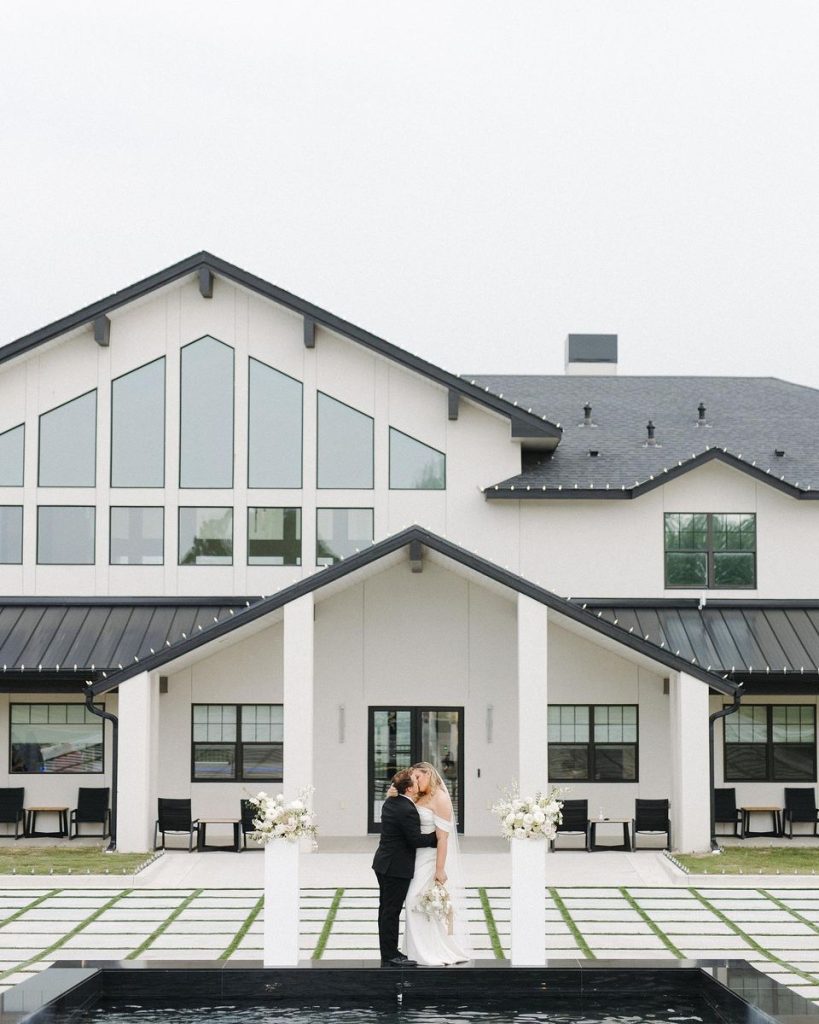 The Range Wedding + Event Venue is one of Oklahoma’s newest wedding venues. Located in Stillwater, this beautiful 12,890 square foot space is designed to compliment any style of wedding or event. As you enter the property, you and your guests will be greeted by a white covered bridge surrounded by natural scenery and wildlife that is perfect for your couple’s and wedding party portraits. Plus, the white exterior and interior and black and wood accents make it a truly a one-of-a-kind venue, perfect for couples wanting to craft a unique wedding celebration.