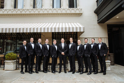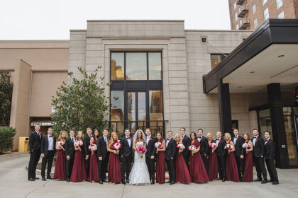 Ashtin and Cameron decided to have a glamorous New Year’s Eve wedding at the Skirvin Hilton in downtown Oklahoma City. They dreamed of a big celebration with all of their friends and family in a historic, elegant venue. The ceremony was held in the stunning Venetian Ballroom with its grand windows and sparkling chandeliers. After the ceremony, officiated by Cameron’s grandfather, guests made their way to the Grand Ballroom to celebrate with the newlyweds and ring in 2016. The couple owes it to their incredible vendors for making their dream wedding become a reality.