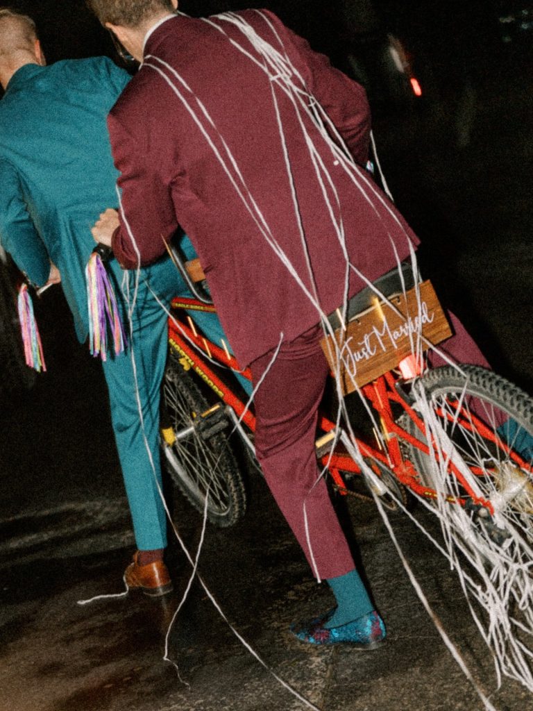 Noah & Brent’s day, planned by Erielle Gray Creative, was filled with vibrant colors and meaningful moments. Their ceremony honored Brent’s Cherokee heritage with sacred rituals led by a Native priest, and the reception featured heartfelt toasts, charming bicycle details, and the sweetest cake.⁠