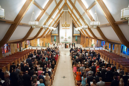 Inspiration for their wedding came from Matthew’s proposal. Candles and Christmas lights were a necessity as they created the perfect wedding to fit their styles and personalities. When their wedding day finally arrived, it was even more perfect than the couple had imagined. Their ceremony was held at Christ the King Catholic Church; the church’s beautiful architecture and lovely white walls made for an incredibly romantic setting.