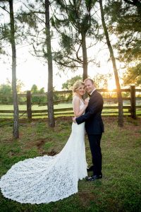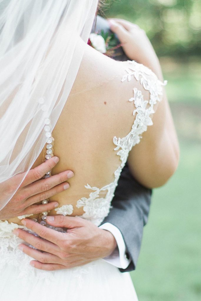 On the morning of their wedding, the wedding party and their families got together for a rehearsal brunch. They parted ways afterward – the men spent the day playing poker and the ladies spent the day getting ready. Ali from Profile Concierge Hair Service made Alanna and her maids look incredible. Alanna is thankful to the couple’s family and friends who made the reception and ceremony areas look immaculate. Flowers were everywhere they could be and the pergola featured draped tulle for a romantic, elegant look during the rustic ceremony. Alanna and Jacob had an outdoor ceremony followed by a ceremony inside the gorgeous venue. The couple and their families still laugh when they recall the officiant accidentally announcing them as Mr. and Mrs. Clark, the bride’s maiden name!
