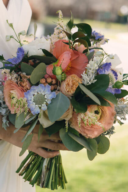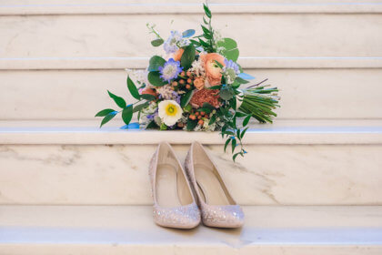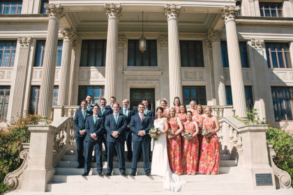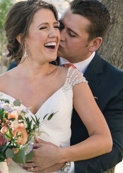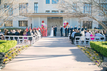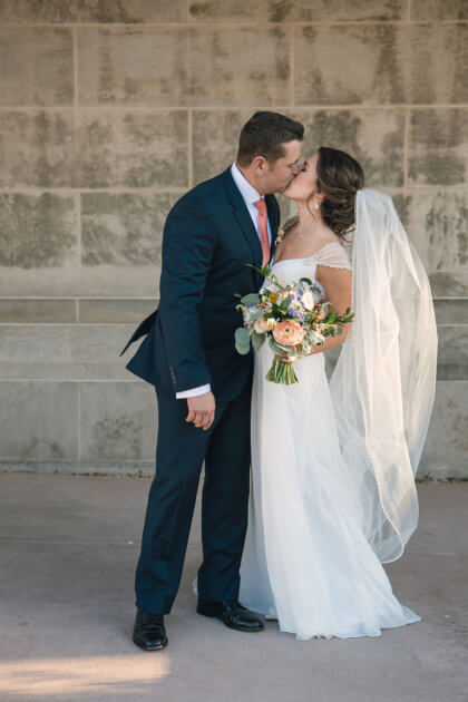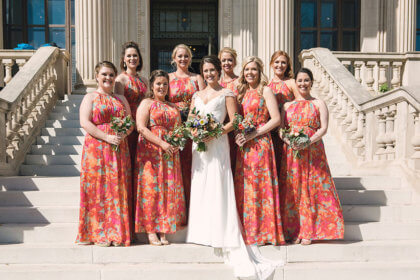 Emily Sutton and Michael Zurmehly wed on March 19, 2016, at the Oklahoma Hall of Fame Gaylord-Pickens Museum under the coordination of Camden Chitwood with Emerson Events. Emily wore a stunning Maggie Sottero dress that she loved for the simplicity, fit and jeweled cap sleeves. The theme of their wedding was colorful, whimsical, romantic and fun. They accomplished this by having a variety of colors including coral, pink, orange and mint. The colors were incorporated in her bridesmaids’ floor-length floral maxi dresses designed by Shelli Segal. One of Emily’s favorite memories from their wedding was after they kissed during the ceremony, their dog Okie barked in approval. The couple’s first dance was to “(God Must Have Spent) A Little More Time on You” by NSYNC followed by their song, “Treasure” by Bruno Mars, choreographed with the bridesmaids. Another fun moment was when Emily’s high school friend surprised the couple with a video message from Bill Paxton from Twister congratulating the couple!