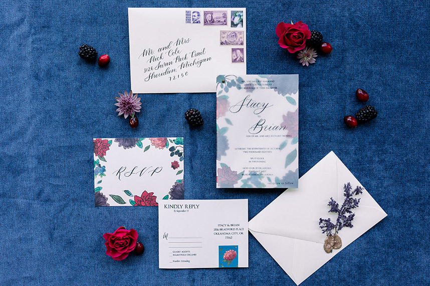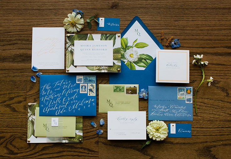 Sarah Ederer, owner of Celester Paper Co., is an Oklahoma City based calligrapher who specializes in wedding calligraphy, stationary and lettered prints. We love her natural talent for precise calligraphy and beautiful designs! The suite above is just a glimpse into her exceptional designs.