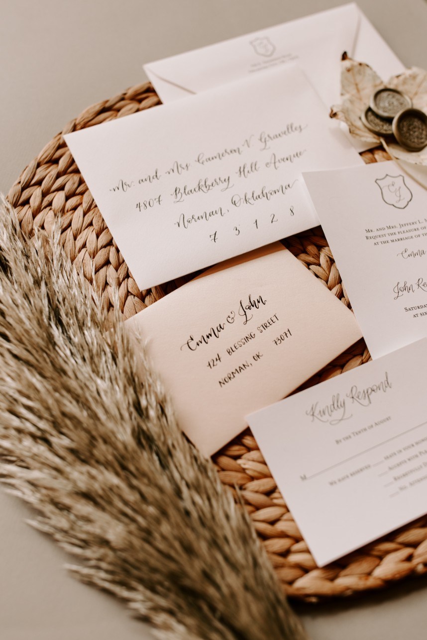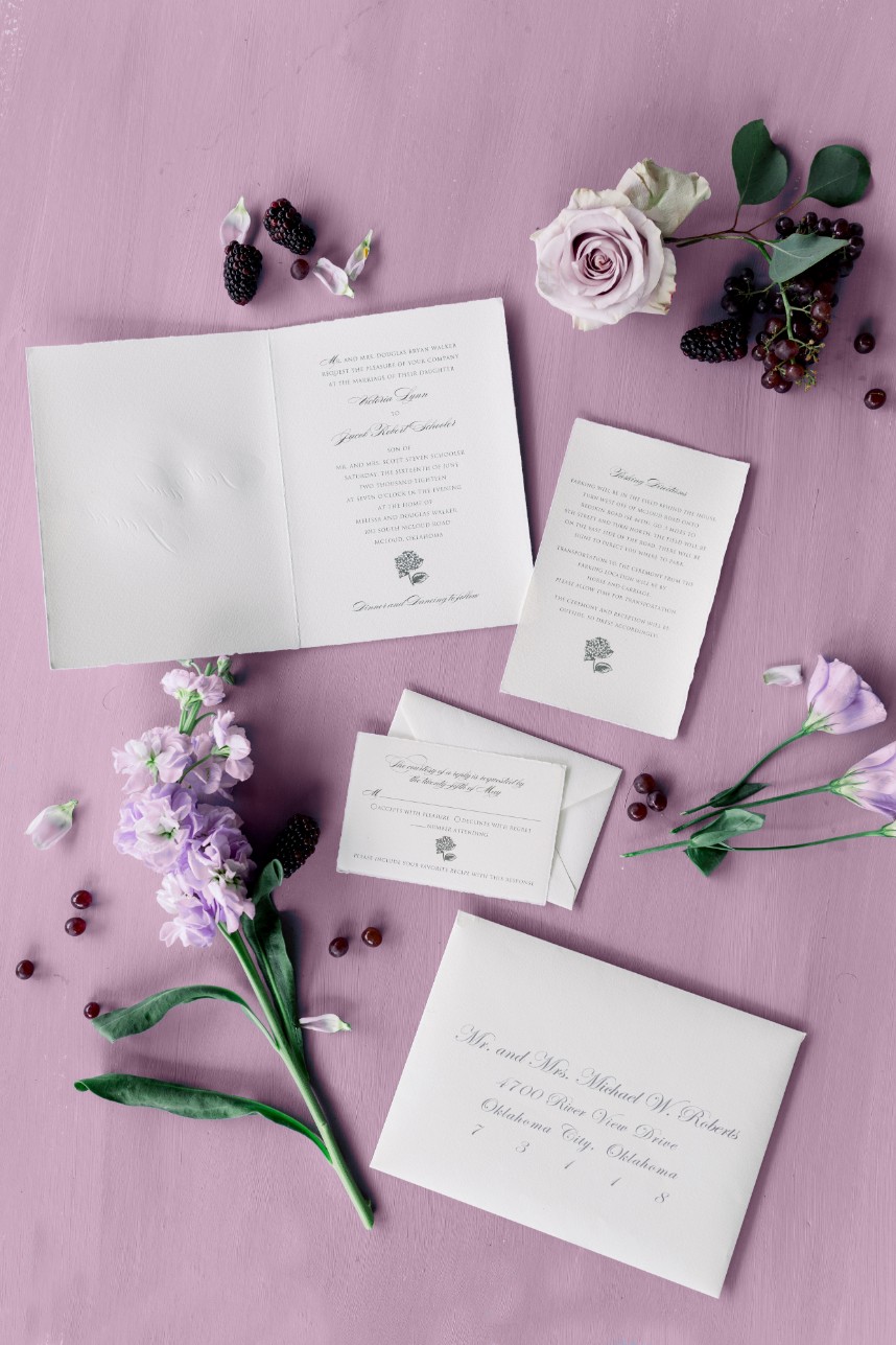 From the first save-the-date to the final thank you, Laurel & Marie has you covered. Located in Tulsa, this paperie duo’s goal is to provide you with an easy, friendly experience so that the entire stationery process is completely stress-free and you walk away with a beautiful end product that shows your loved ones how much their presence means to you! We love this gorgeous invitation suite they created with their simply elegant calligraphy!
