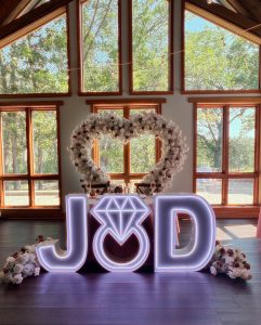 Chandeliers, spotlights, color wash lights, LED lights, string lights, lamps – Most likely, your reception area will require multiple types of special lighting. And, don’t forget to grab your 3 or 4 ft. marquee letters to customize your event! You’ll want to consult with a professional lighting rental company (sometimes separate from rental companies) to decide which type of lights will best serve your space.