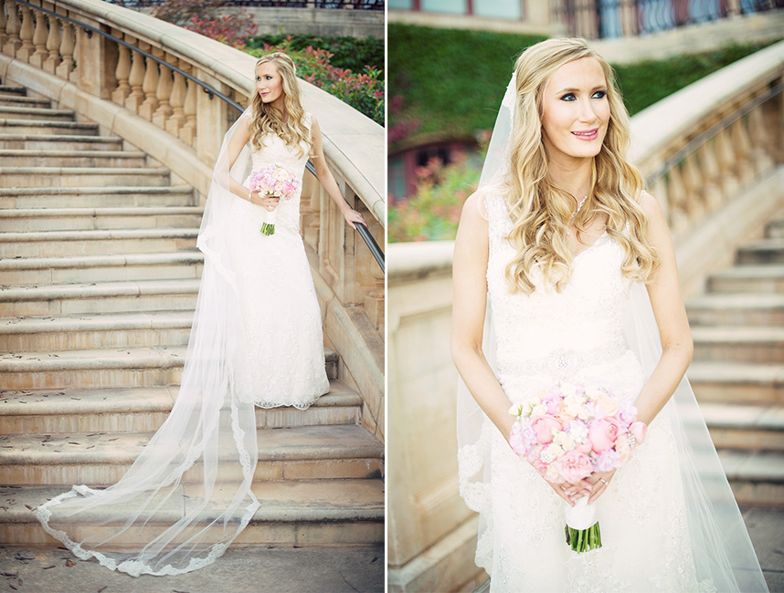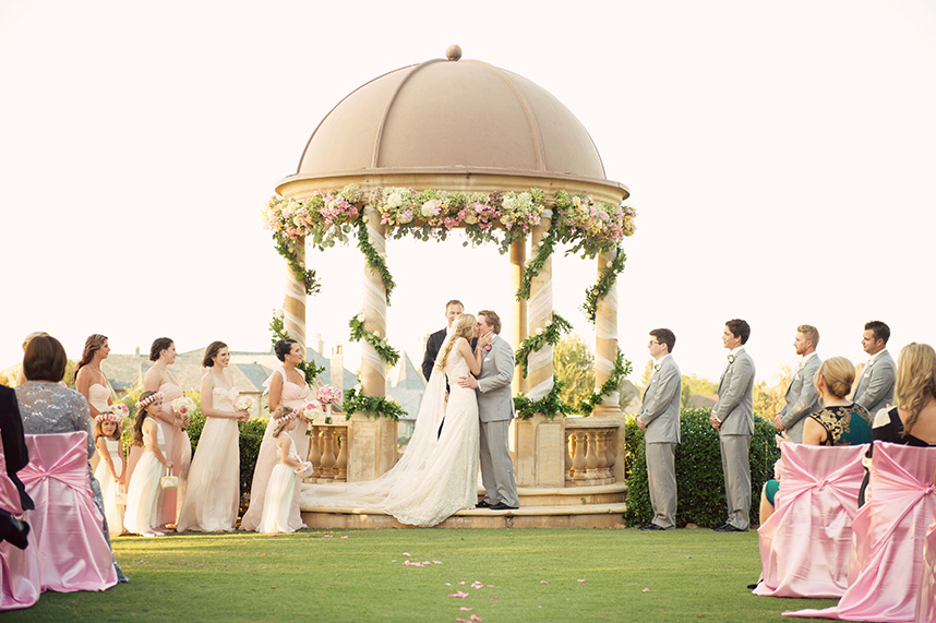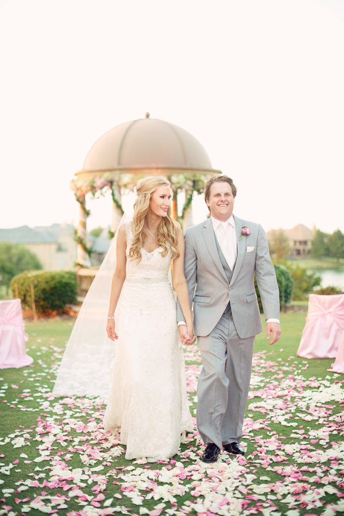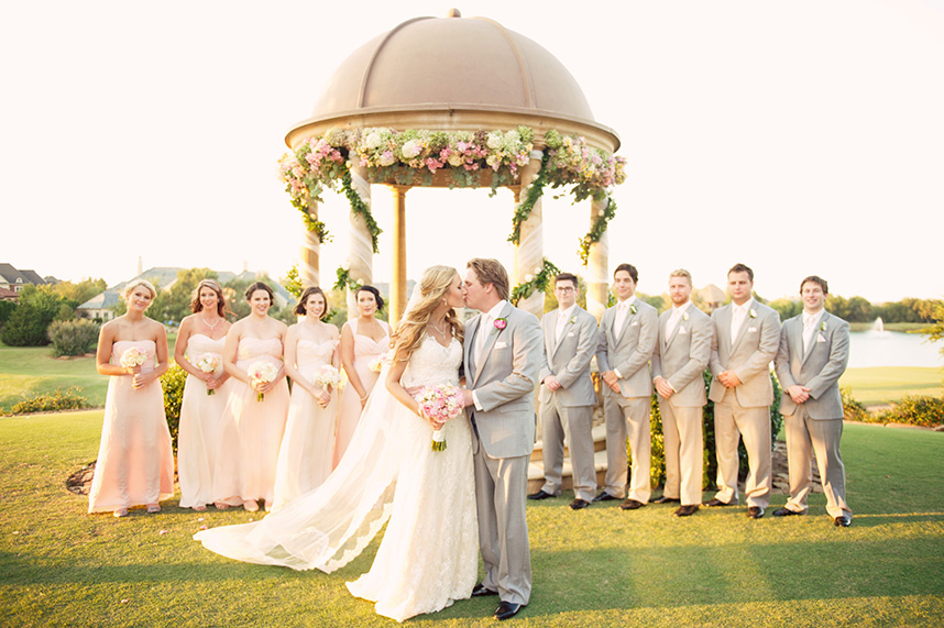 From the quaint outdoor ceremony to the stunning ballroom reception, Planned 2 Perfection pulled out all the stops for Leah and Dax’s romantic Oklahoma wedding at the Gaillardia Country Club. Guests were in awe of the soiree complete with pretty pastel florals from Tony Foss Flowers, and the bride’s classic empire waist gown with intricate beading and lace detail from Meg Guess Couture. Her bridesmaids looked perfect by her side in flowing gowns from Prim.