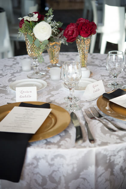 Black and white with pops of gold and red just oozes that old Hollywood glam feel – what perfect inspiration from Lauren and Kevin’s Oklahoma wedding! Read on for more details from their big day: