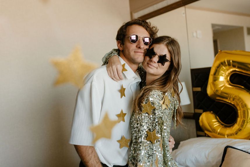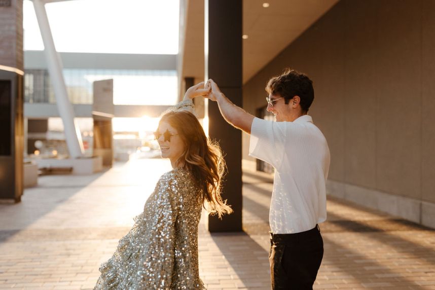 We love the idea that you never stop growing in your marriage, so an anniversary shoot captured by Susan Alyse Photography was just perfect for Mikayla and Jonathan to celebrate 5 full years of marriage and their light-hearted love! Even better was their chic backdrop of Omni Oklahoma City Hotel where everything from the room to the rooftop pool was fair game for snapping shots in their snazzy outfits and sunnies to match. Modern photography styles and authentic, intimate moments work hand-in-hand to bring together a gallery worth framing while still showing off their relationship’s true essence and romance. See all the dreamy and dazzling photos captured during this sunrise anniversary shoot down below – plus, read on for a note from their photographer for more about Mikayla and Jonathan’s oh-so-chic session. Cheers!