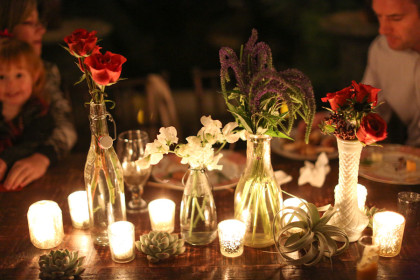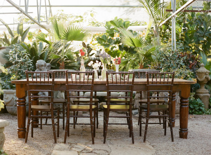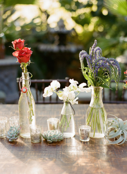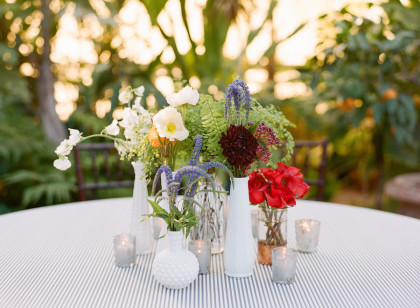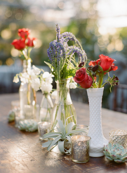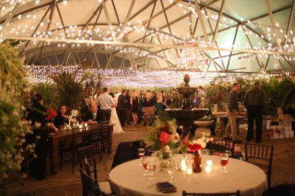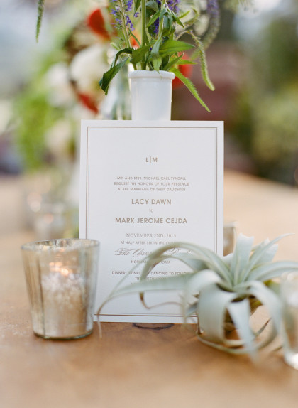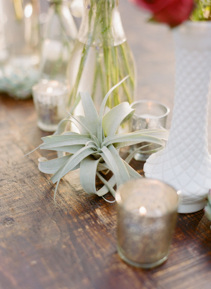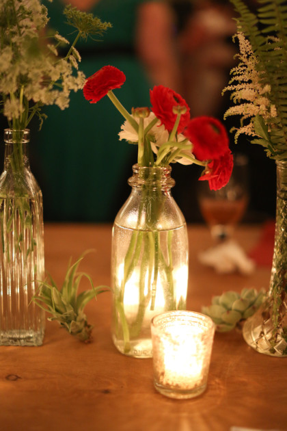 Succulents, lush flowers and glittering tea lights decorated the tops of the wooden tables scattered among The Greenhouse’s giant plants. Some flowers were propped up in vintage milk bottles, a collection from the women in the bride’s family. The menu was displayed on a chalkboard propped up on an easel. The SNL Photo Booth provided amusement and lasting memories for everyone in attendance. The entertainment continued as the newlyweds and guests boogied the night away on the dance floor to the musical stylings of DJ Blake Overstreet. Lacy and Mark’s first dance was to “Into the Mystic” by Van Morrison.