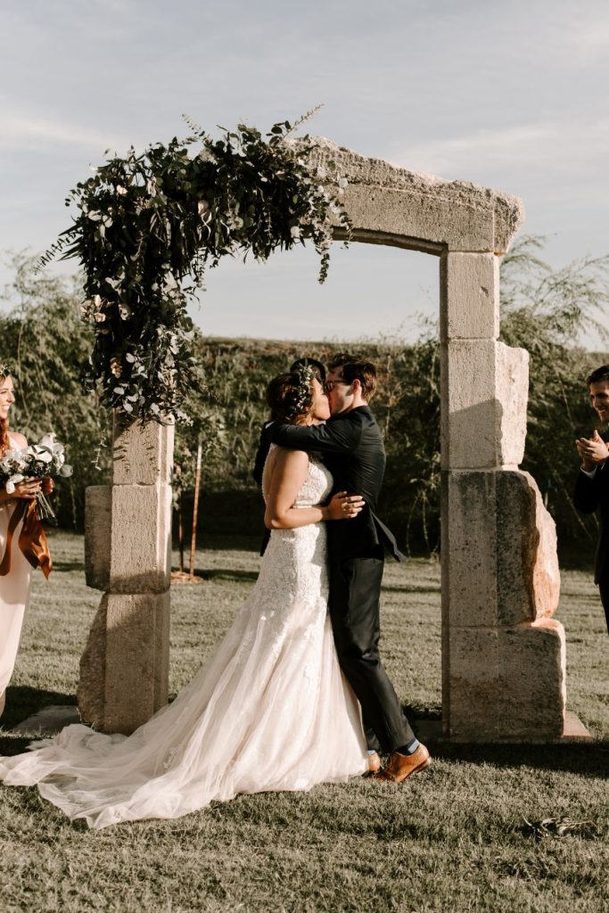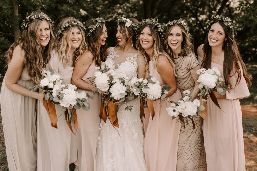 Anissa and Evan’s organic outdoor wedding day was pure bliss at The Baumberhof, captured by Patricia P Photography. Whimsical and timeless pieces provided by Marianne’s Rentals Special Event Solutions helped make this celebration a success. Anissa and her gals wore beautiful flower crowns, which paired perfectly with the prettiest, illusion lace bridal gown from Bella Rose Bridal – Edmond. We just love how special and unique Anissa and Evan’s day was, incorporating her Iranian family history – scroll to see all the beauty captured by Patricia P Photography!