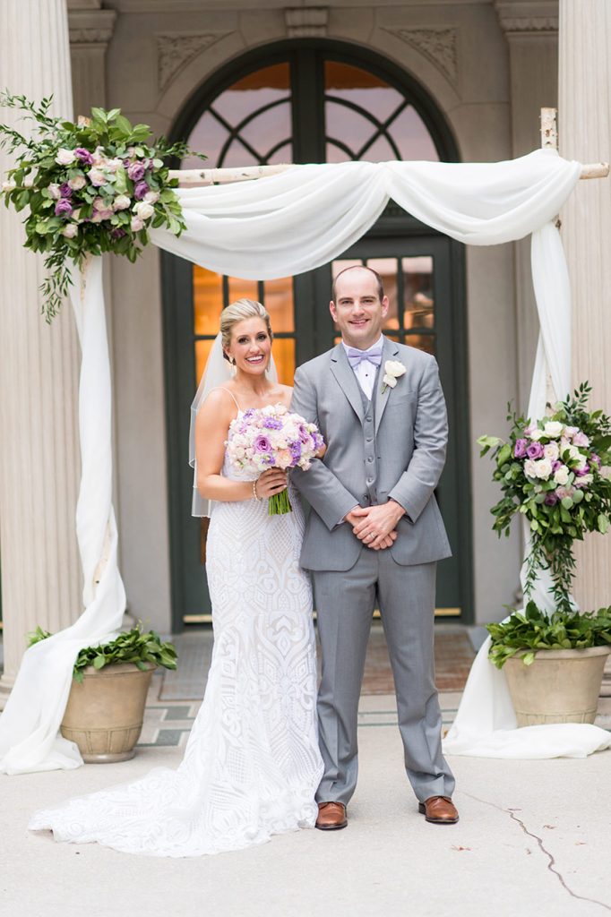 After the ceremony, guests enjoyed cocktail hour at the Tulsa Historical Society & Museum. The reception tent was decorated in whites and golds, with a large ethereal canopy of purple and white flowers over the head table, created by The French Bouquet. Guests were served dinner expertly prepared by Just Catering by Orr. Amanda Lassiter took beautiful photos for the couple. In addition to marrying James, a touching moment for Marci was dancing with her father who is her rock. Marci and James danced into the night until the sparkler send-off.