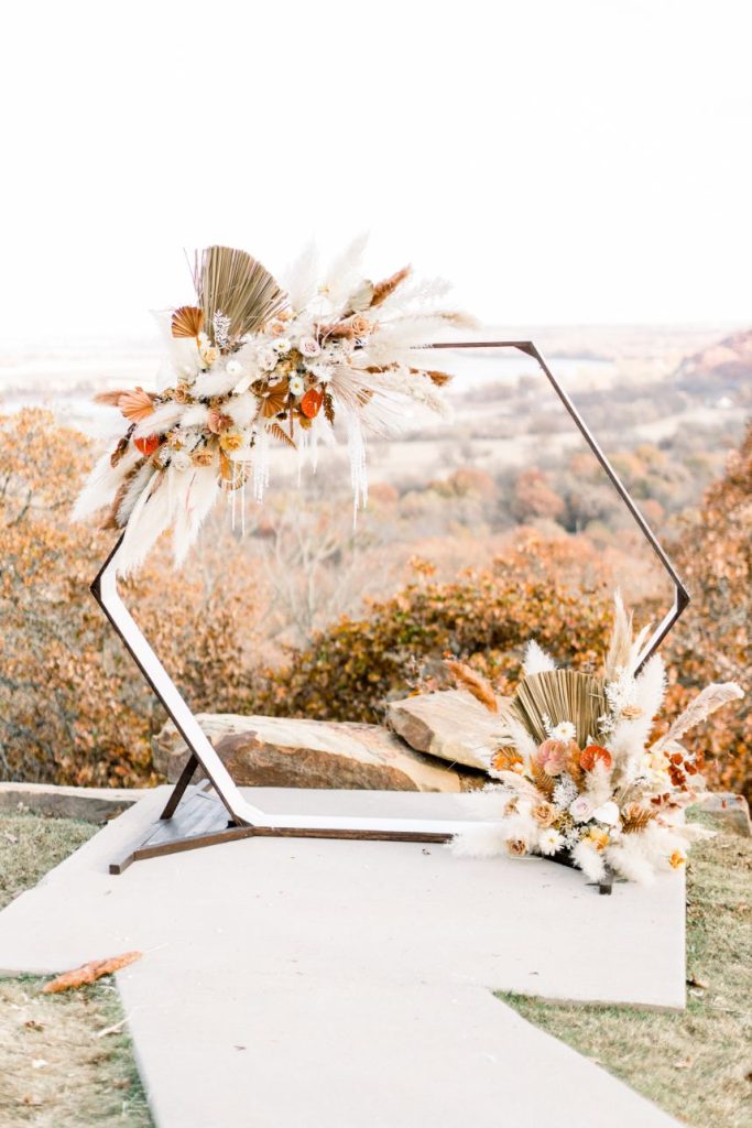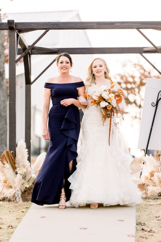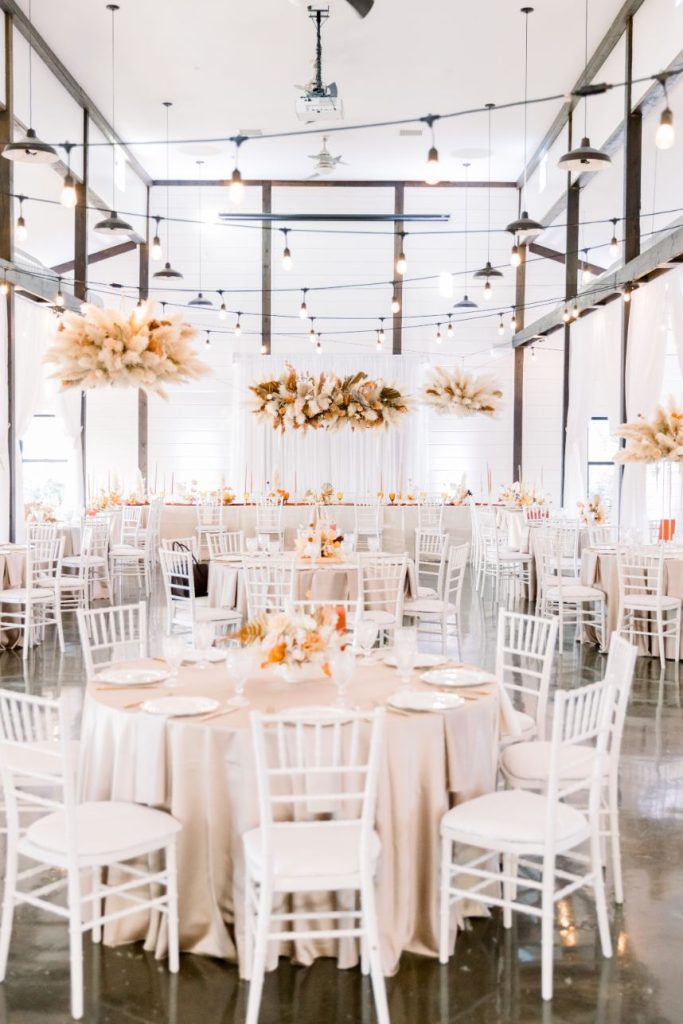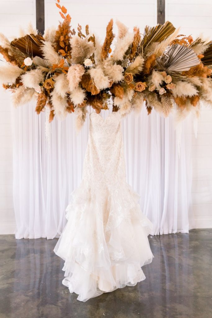 As Sheay and Gabriel began their wedding planning process, Sheay learned how much her husband loved and supported her. Gabriel supported all of Sheay’s ideas, like having pampas grass around their house 24/7 and bringing her coffee during late-night wedding project nights. However, Sheay is no stranger to wedding planning and worked with her boss/bestie Malyn Made to create her dream wedding with planning and florals. Together they made six pampas grass chandeliers, bohemian floral arrangements, and a massive dessert wall that featured yummy desserts and cake from Sweet Devotion Cakery. Finally, the boho wedding was complete with decor and rentals from Party Pro Rents. Sheay’s favorite memory of the day was walking down the aisle with her mom to marry the love of her life. Sheay said, “I do” in a gown and veil from Chantilly Couture, and we are obsessed with her boho glam bridal look. Ashton Marie Photography captured the fall hues perfectly in this irresistible pampas grass wedding for our boho glam bride. Keep scrolling to read a special note from our bride on her dream wedding maker. Cheers to Mr. and Mrs. Crow!