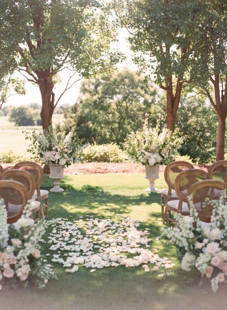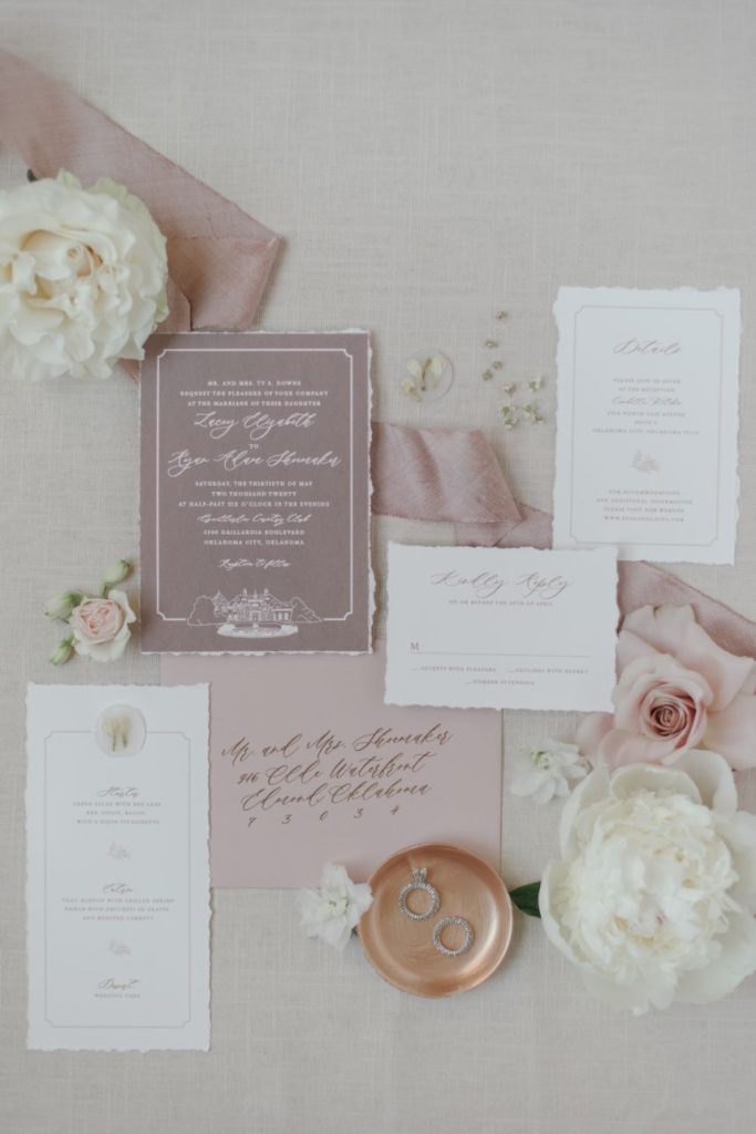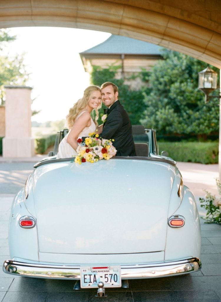 Classic meets romantic in Lacey and Ryan’s pastel garden wedding! Despite the pandemic, the couple was still able to have the wedding of their dreams! Their ceremony was held at the oh-so-beautiful Gaillardia Country Club in the cutest garden area with their closest loved ones! Beautiful white and blush florals from Poppy Lane Design stand at the altar and line the aisle creating the dreamiest atmosphere! Lacey’s flowy lace detailed gown from J. J. Kelly Bridal Salon was absolutely stunning paired with her simple yet elegant hair and makeup! After the ceremony, the couple was escorted to the reception in the most adorable vintage baby blue car! At the reception, tables were decorated with lace tablecloths, soft florals, candles and subtle gold details and served as an elegant and intimate setting for the guests to enjoy their meal! Photographer Amanda Watson captured all the romance and joy on this couple’s special day! Cheers to Lacey and Ryan!