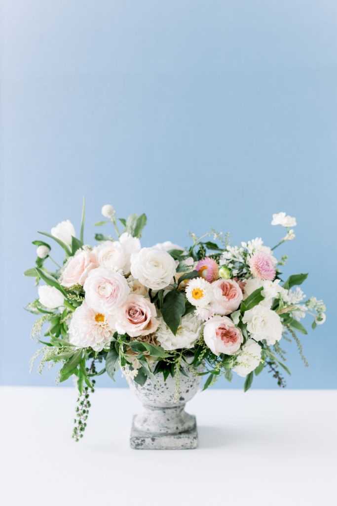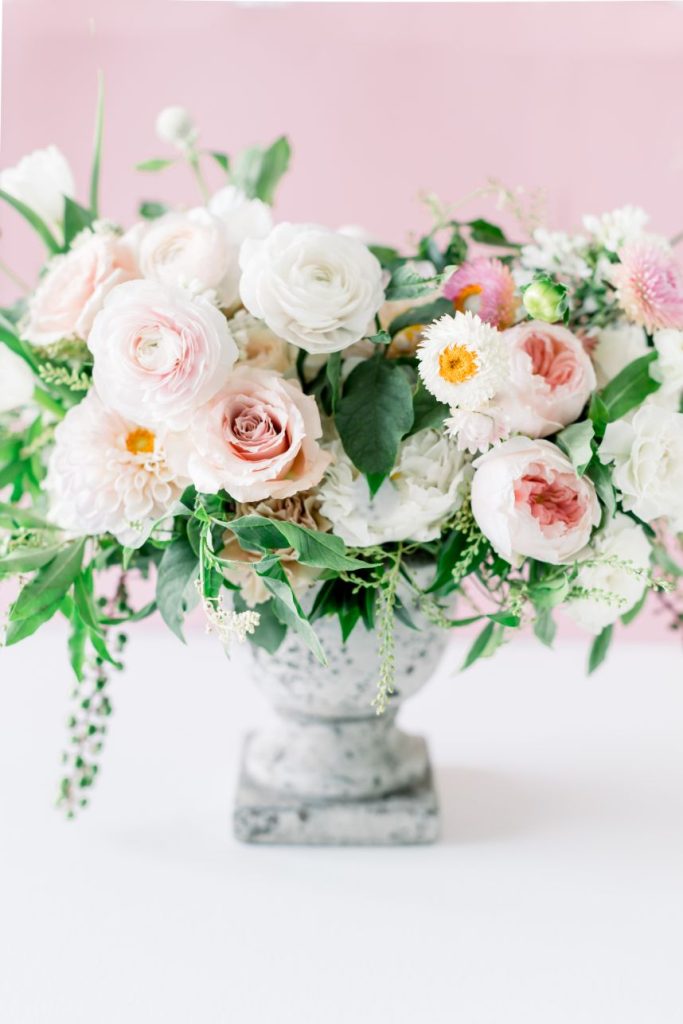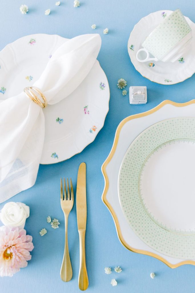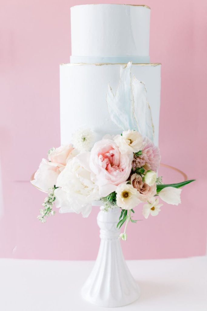 We know that color can play such a key role in your wedding so you’ve likely been searching day and night for the perfect palette. Captured by Ashton Marie Photography in full pastel perfection, this delicate English garden wedding inspiration has our pinkies out and our hearts set on these sweet shades of rose quartz pink and serene blue. With the approachable vibe of a garden party and paired with classically luxe adornments fit for royalty, this editorial showcases this timeless look right here in Oklahoma. Watercolor-lined envelopes hold the sweetest floral covered invitations from No Regrets that set the tone for a perfectly posh affair to come. Whimsical fine china from BC Clark Jewelers makes for the perfect garden party place settings in these editorial scenes characterized by beautiful spring florals from Poppy’s Garden that make up table arrangements filled with the sweetest pastel roses, peonies and daisies. Upscale and minimal in all the best ways, this fine jewelry from BC Clark Jewelers adds a bit of flair to the model’s simplistic chic V-neck gown from Bella Rose Bridal that is perfect for both indoor and outdoor ceremonies of nearly every season, and its silhouette is one that makes every side your good one. The artists at M Salon created the softest yet most elegant updo with romantic waves to frame this model’s stunning face – glammed with a sweet bridal look by Nadja Theodore MUA complete with the perfect rosy lip. The showstopper of this styled shoot was the gorgeous white cake featuring fresh florals as well as a gold-edged design by Mishelle Handy Cakes – it looks too good to eat! We think this English garden wedding inspiration looks like a dream whether your view is through the looking glass or not. Cheers!