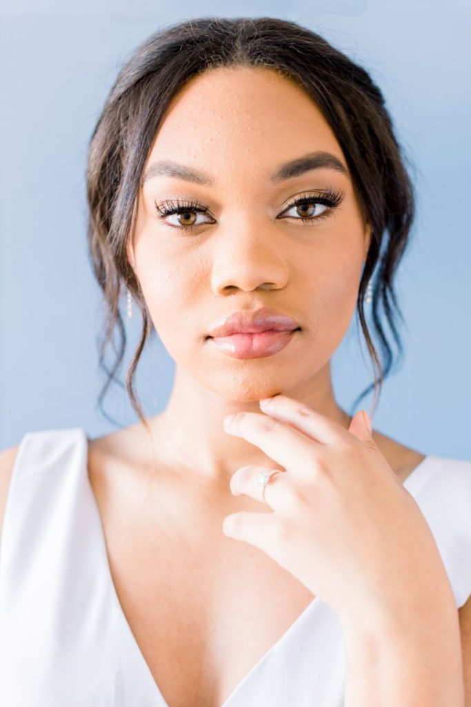From the hairstylists at M Salon: “I love that we created imperfectly perfect a soft yet elegant updo with a combination of twists and curls to give this model a unique look to allow her features stand out.”