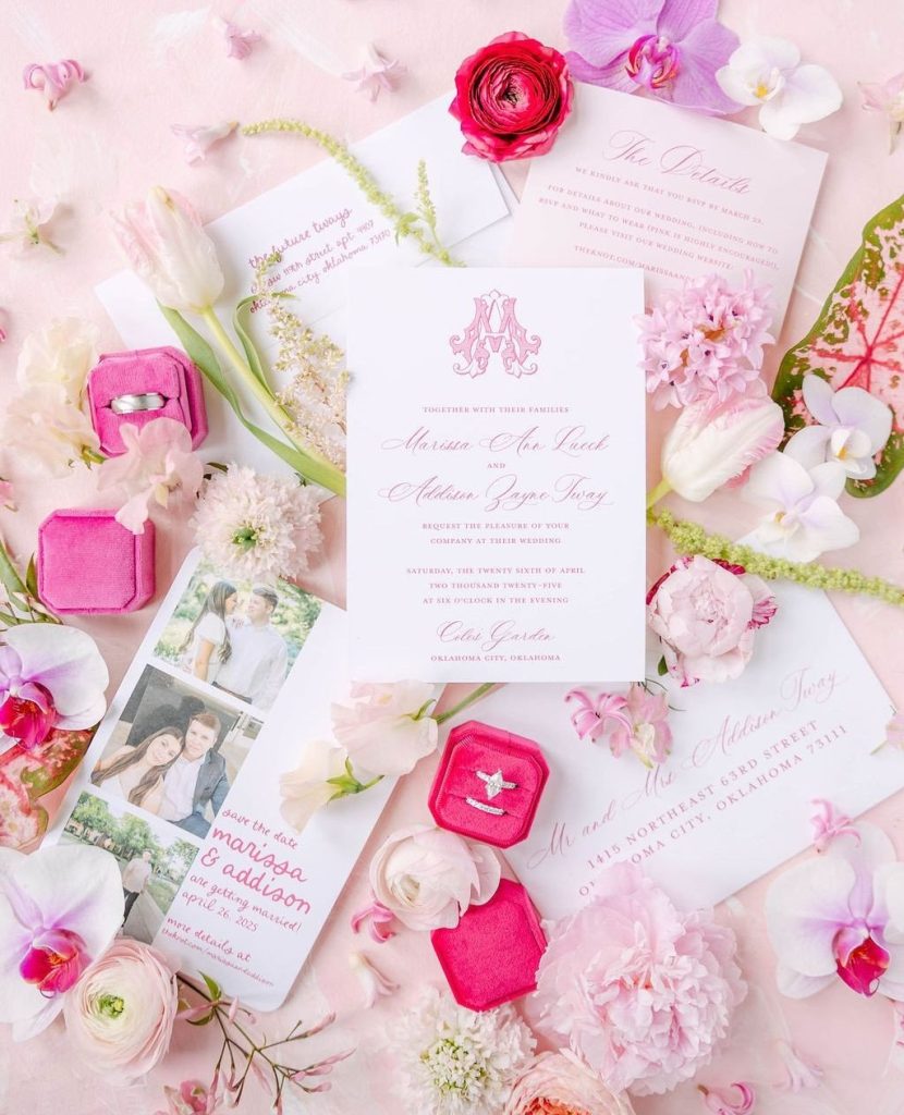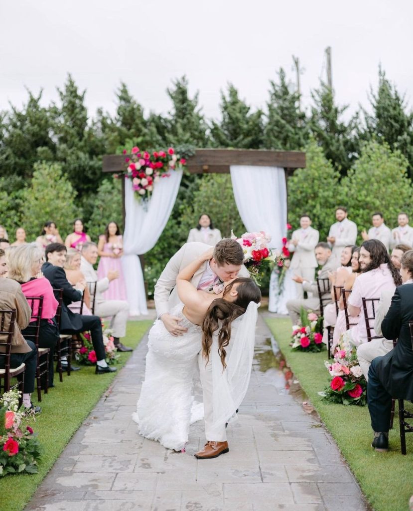 “I have ALWAYS dreamed of having a pink wedding and everything was perfect. From the big, to small details it was everything I could’ve asked for. It had rained/ flooded all morning. By the time the ceremony came my amazing vendor team had dried up the outside and put everything out so I can have the outdoor ceremony that I wanted. When I walked down the aisle the sun was out. It was so special, a day we will never forget. Our vendor team was so incredible!” – Addison & Marrisa