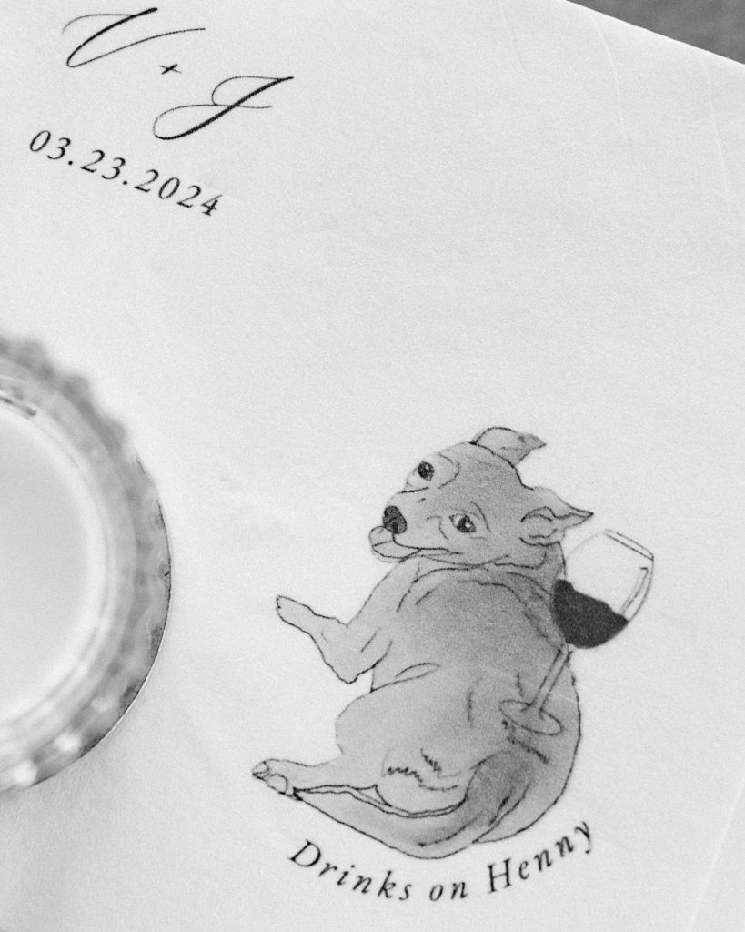 Our day would not have been complete without our dog, Henny. Not only was she there for getting ready and the ceremony, donning a custom floral collar by Ribbon and Blooms Floristry LLC and a pearl leash, but Jeramey and his groomsmen also wore Chihuahua socks in her honor.” – Victoria & Jeramey