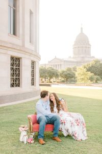 One of our own recently celebrated her first anniversary, and we’ve been chomping at the bit to share her adorable styled anniversary shoot with Candi Coffman Photography ever since! We love how Molly and Jude incorporated the traditional top tier of their wedding cake along with some bubbly for a sweet picnic setup. But really, their darling schnauzer puppy stole the show for this stylish shoot. Congrats to the happy trio!