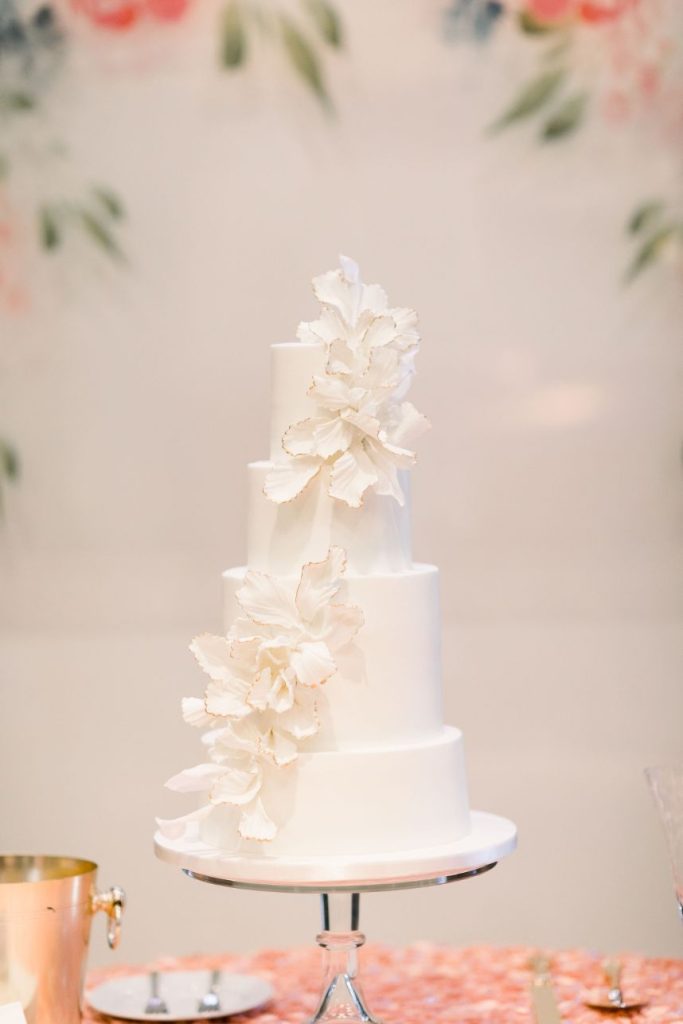 “One of my favorite parts was seeing all the little thoughts and details I had put into the wedding come to life. I absolutely loved all of the little details, from the cute cotton candy cart we built together to the handcrafted flower arch my mom crafted. It made me so happy to see all of the time and love put into the hand painted florals on the stationery and the cake backdrop turn out so beautifully.”