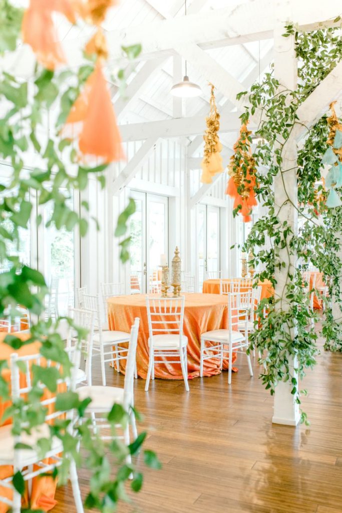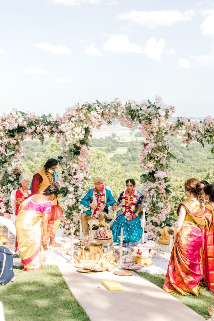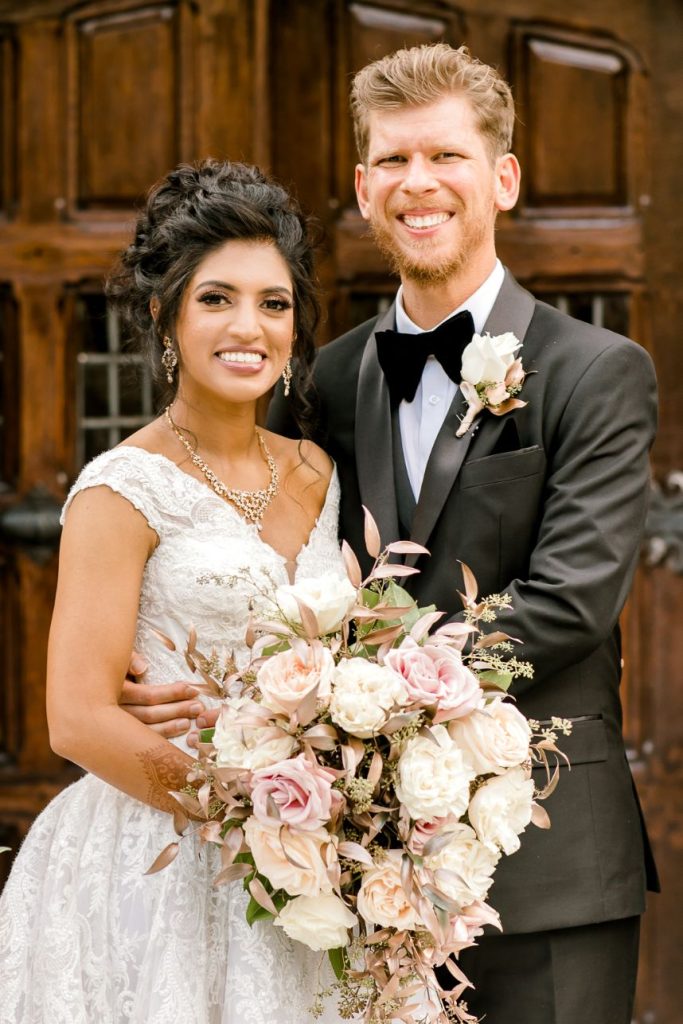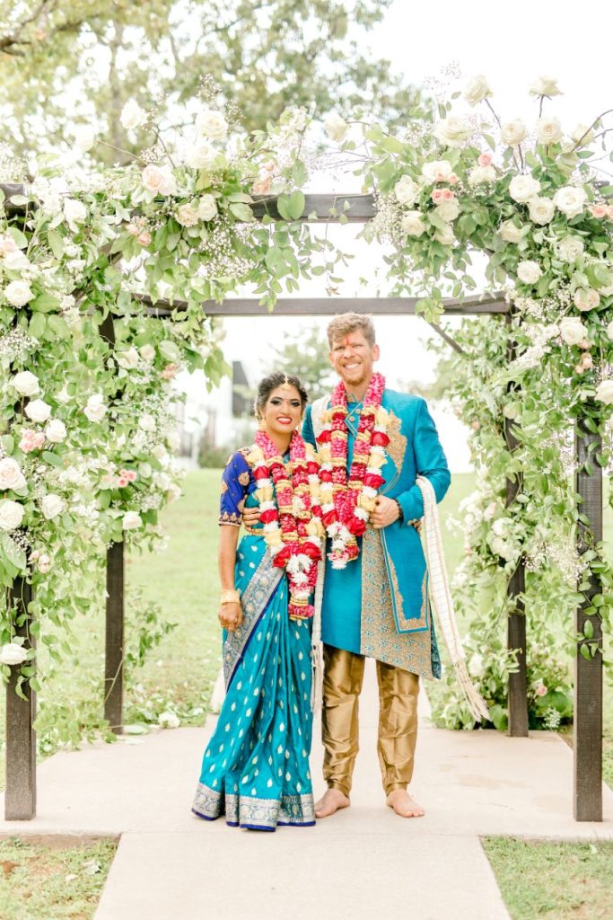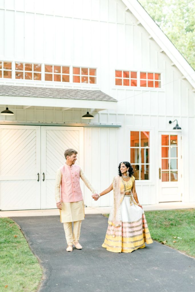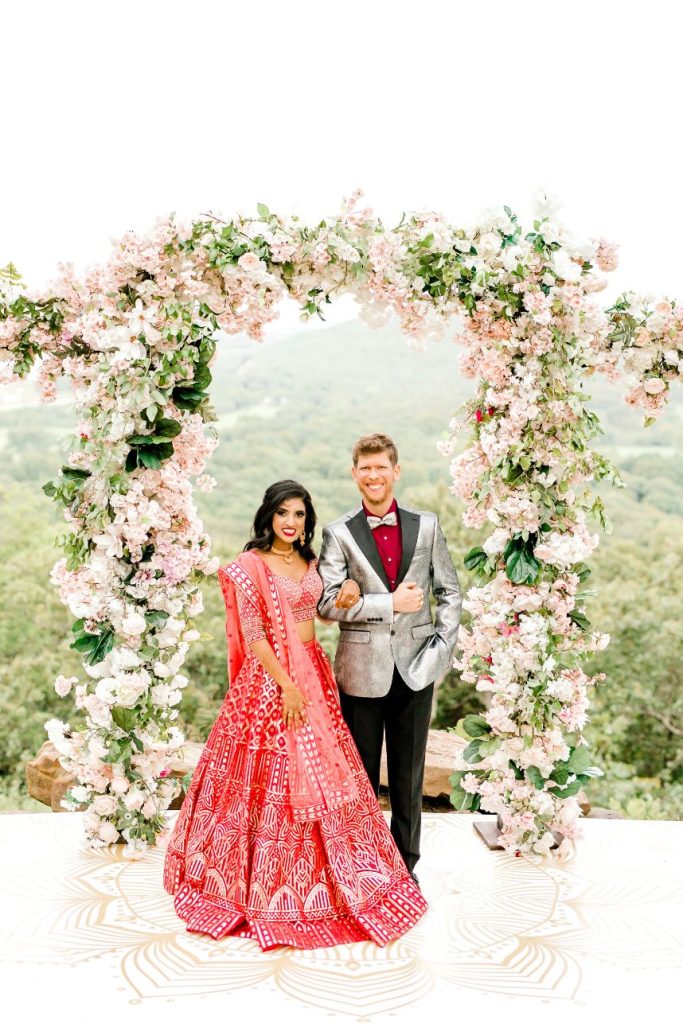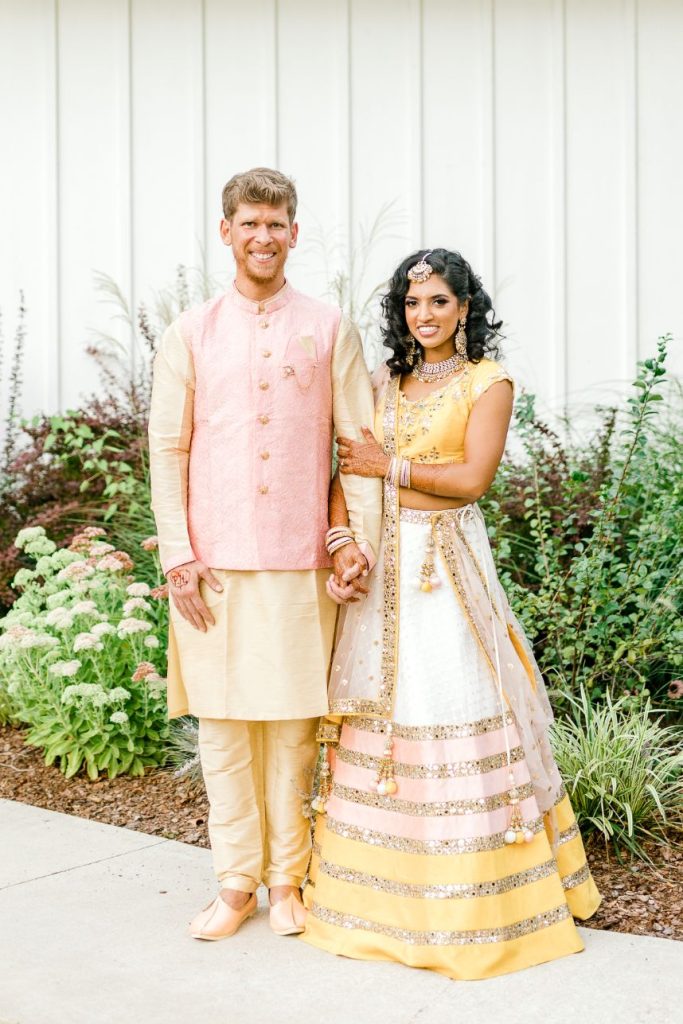 If you’re looking for the ultimate wedding inspiration, look no further than Prashanthi and Stephen’s grand wedding weekend! The couple’s marvelous wedding entailed a three-day affair incorporating the bride’s Indian culture and traditions with the groom’s Catholic background. This wedding includes stunning details and three unique wedding events all packed into one. Prashanthi and Stephen, who met through Prashanthi’s co-worker and now brother-in-law, got engaged in March 2020. After planning through a pandemic together, these two lovers were ready to get hitched! Their wedding weekend began on Friday with a Mehndi ceremony that involved choreographed dances performed by friends and family. In addition, henna artists applied Mehndi to interested guests. During the Mehndi, Stephen surprised Prashanthi with a professionally choreographed dance to her favorite Telugu song that he and Prashanthi’s siblings and a friend learned and performed. Prashanthi said, “it was my favorite wedding memory, and truly epic!”