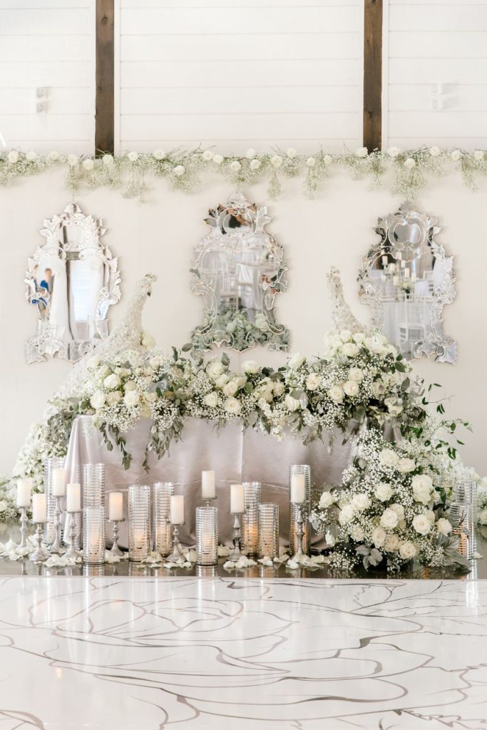 The following day, Prashanthi and Stephen held their traditional Catholic ceremony at Christ the King Church with a reception at Harwelden Mansion. Their traditional wedding included beautiful blush tone detailing for a classic affair and dancing to Box Talent- Time Machine all night long. Their final wedding ceremony followed a traditional South Indian format at Dream Point Ranch the next day. After their outdoor ceremony with a centerpiece mountain crest view, guests proceeded inside for a luxurious all-white wedding reception. Decor and rentals from Party Pro Rents, blooming white florals everywhere you look, and a stunning bridal cake from Sweet Devotion Cakery, the couple’s reception hall took our breath away. Meg Rose Photography captured each and every detail so beautifully and elegantly each day, and we can’t wait to share the gallery she put together below with all of you! In addition, if you can’t get enough of Prashanthi and Stephen, check out their wedding film from the talented Transform Visuals below as well.