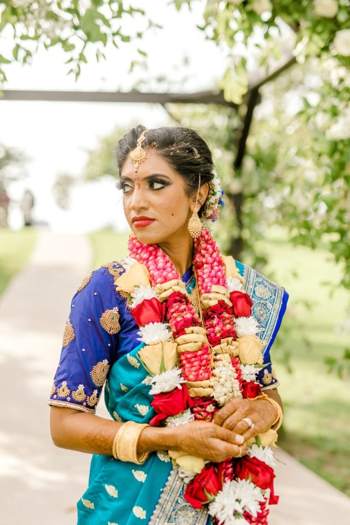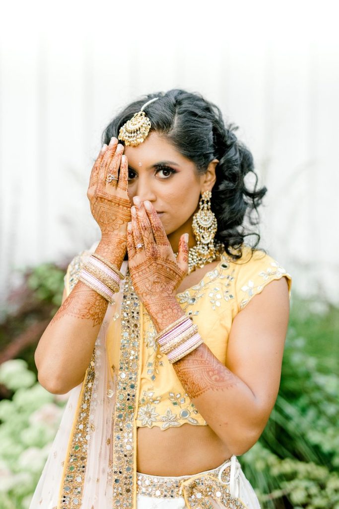 “My Indian culture played a big part in our wedding. Two out of the three days included traditional ceremonies and festivities. On Friday, we held a Mehndi ceremony that involved choreographed dances performed by friends and family, as well as henna artists applying mehndi on interested guests. On Sunday, the wedding ceremony followed a traditional South Indian format.”