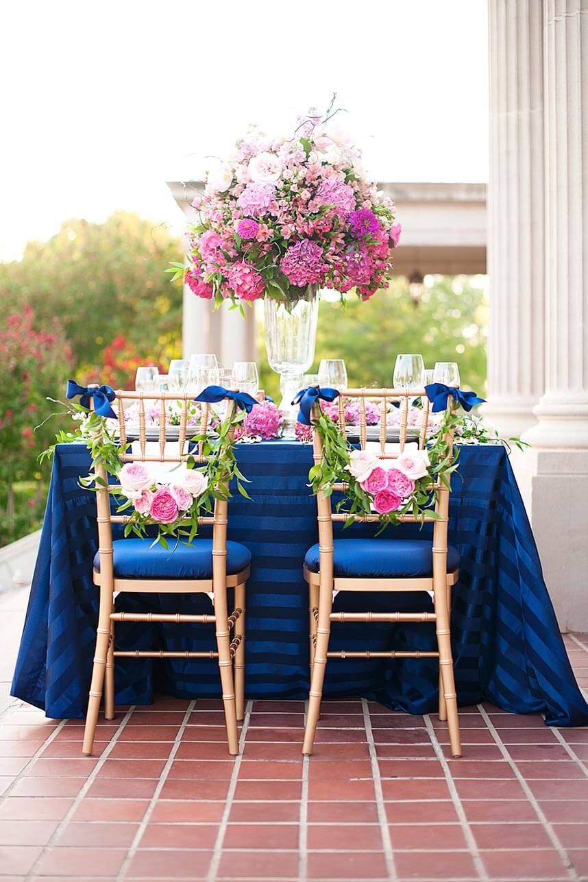 There’s a special place in my heart for this oh-so-pretty and preppy tabletop! The classic combo of navy with pops of pink paired with fun floral swag and beautiful bow details is as timeless as a southern bowtie! Makes me want to sip a sweet mint julep!
