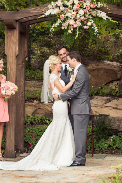 Taylor and Brene’ were married on August 23, 2014, at seven o’clock in the evening. Before the ceremony began, they decided to have a first look. Their photographer, Randy Coleman, and videographer, Jared Keester, were able to capture the intimate moment together – a few minutes together amongst all of the chaos. Brene’ will never forget the moment that they spent in prayer together hand in hand. The ceremony was held outside in the garden and was officiated by the bride’s brother, Bennett Holloway. This was very special to them both because Bennett was there from the very beginning of their relationship and knew them both so well.
