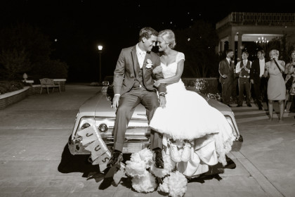 During the ceremony, the couple was surrounded by eight wonderful bridesmaids and groomsmen. The ceremony was Christ-centered and intimate, including the exchange of beautiful handwritten vows. After the ceremony took place, the newlyweds held a reception immediately following in the reception hall. A table at the entrance featured wedding pictures from the past generations of both families. The tables were covered in white linens with gold chargers and chairs. Beautiful floral centerpieces were displayed in the middle of the tables created by Trochta’s Flowers and Garden Center. The flowers were white and coral shades with greenery intertwined. The cake table was filled with cupcakes, cookies and a white cake with buttercream icing created by their caterer, Uptown Grocery. The dance floor was filled with friends and family, each of them enjoying the elegant and fun atmosphere. To top off the night that felt like a fairytale, Brene’ and Taylor rode away in a 1961 baby blue Chevy Impala. The next morning the new Mr. and Mrs. flew to exotic Dominican Republic and spent a week in paradise at the Excellence resort in Punta Cana. They currently reside in Oklahoma City and are so excited to spend the rest of their lives together.