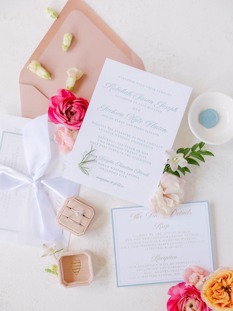 Rebekah & Jackson’s OKC wedding was one for the books! After a sweet church ceremony, they went to a unique reception location, Will Rogers Theatre, where they celebrated with all of their friends and family. Their reception also featured fun fog special effects called “dancing on clouds” thanks to their DJ, All Out DJ.