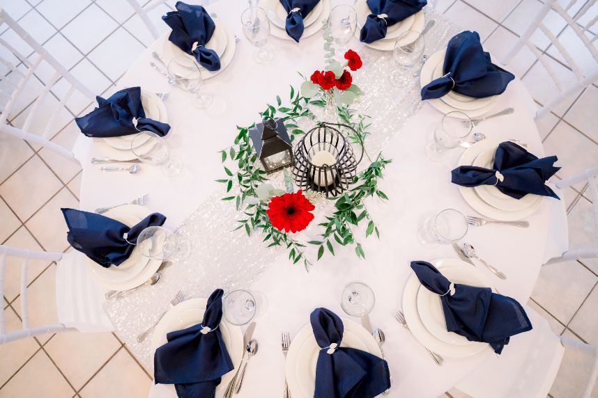 This Wedding’s Red & Blue Palette Stands Out At The Glass Chapel