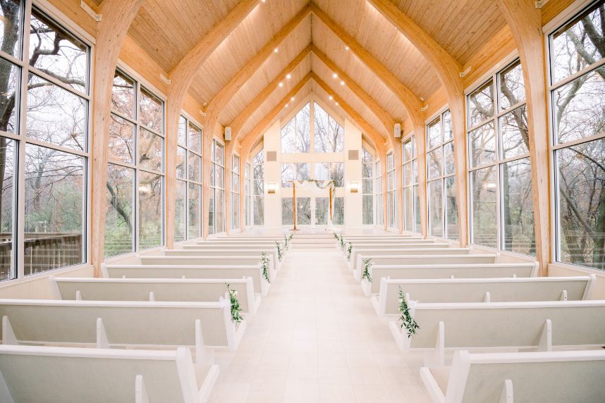 This bold and timeless wedding in Tulsa at The Glass Chapel had all the classic touches of a simple and traditional wedding. Jessica Mattox and Caleb McGuire’s special day was photographed by Ashton Marie Photography, and no beautiful detail or moment was missed. The chapel was every bride’s dream, decorated with soft greenery and delicate white blooms. The windows allowed beautiful natural light to flow in, giving Jessica a sun kissed glow. Jessica’s bridesmaids’ bold burgundy gowns complemented the subtle touches of colorful gerber daises and navy blue tablescapes. The flickering lanterns on every table gave their guests a warm and inviting feel. To prepare for the wedding, the couple wanted to get their fitness on and signed up for a few classes with Pure Barre Tulsa Midtown. They truly were a power couple! All the details of the McGuire’s stunning day are total swoon-worthy, and we know you’ll be just as obsessed as we are! Cheers to the newlyweds!