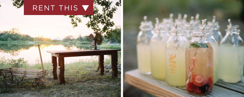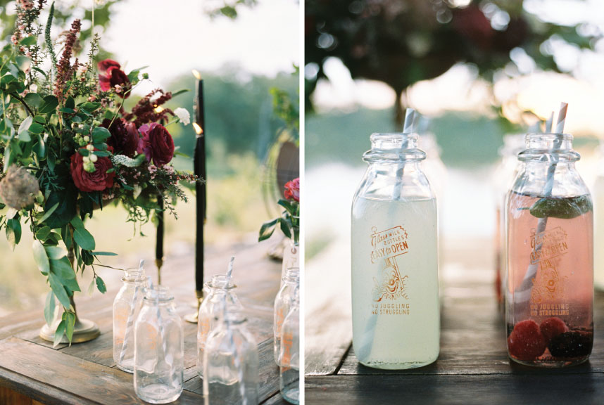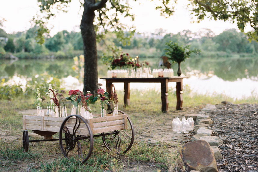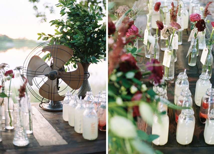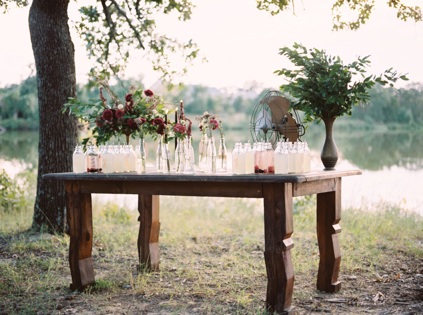 This sweet lakeside set-up from Redefined Rentals has us in the mood for summer! We loved the way Ever Something Event Styling styled this al fresco drink station on a rustic farm table from Redefined Rentals. The vintage milk glasses were the perfect touch and were filled to the brim with refreshing lemonades and berry-infused water. We couldn’t wait to wrap this shoot, grab a drink and enjoy the sunset at Loughridge Weddings and Receptions! Kelbert McFarland Photography captured this picture perfect day, and it couldn’t have been any better! Cheers!