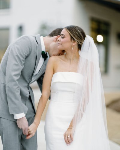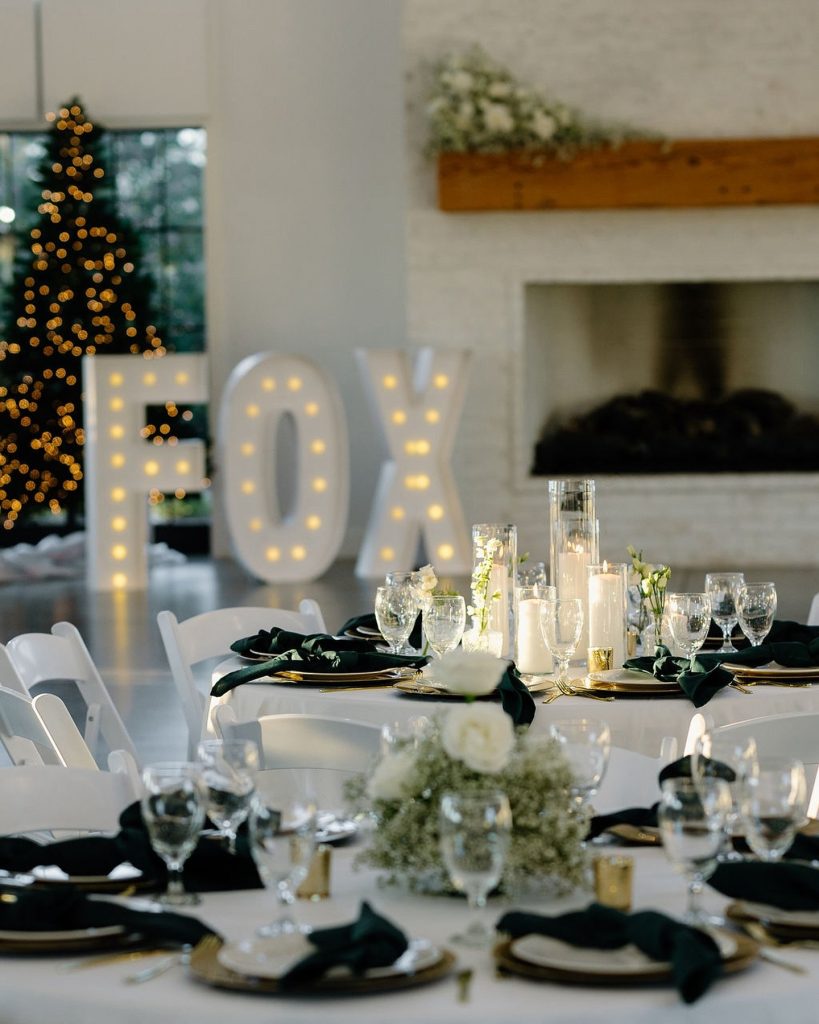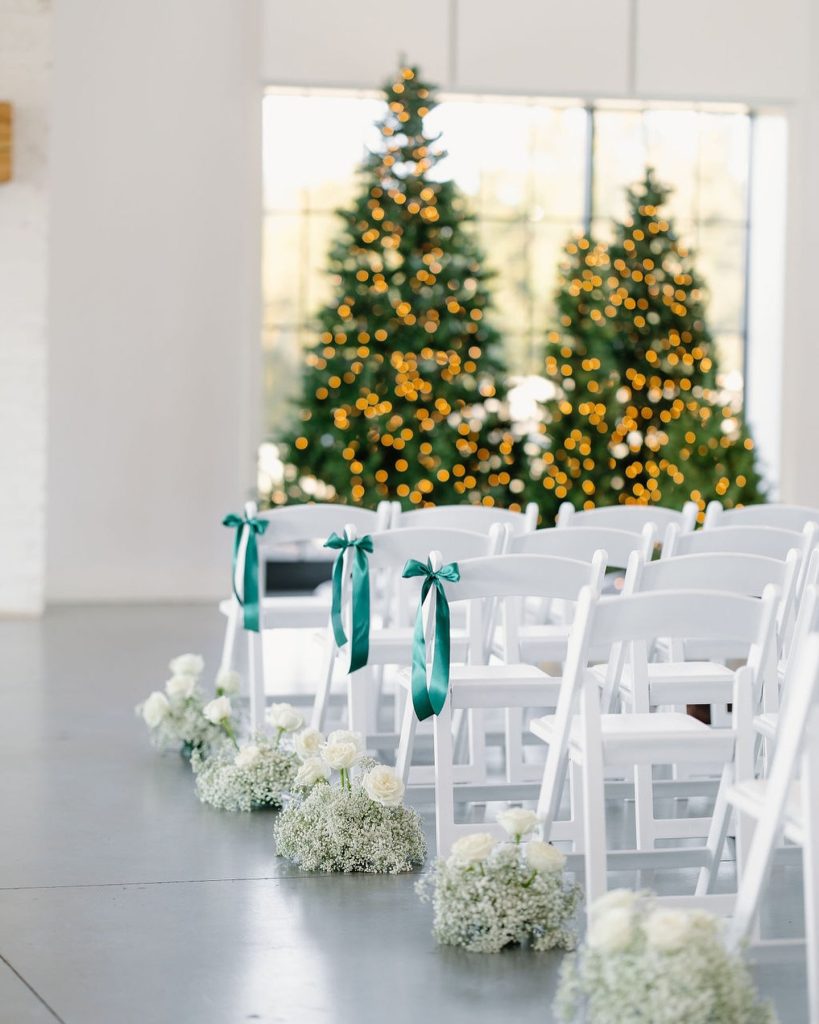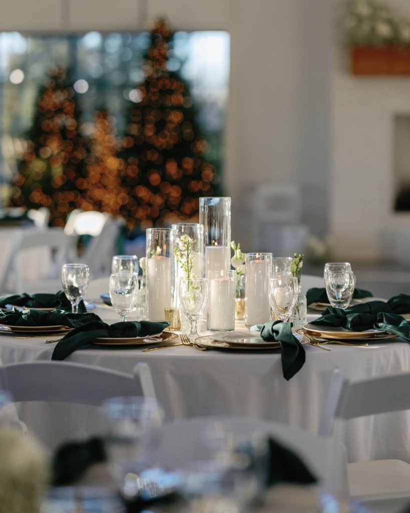 Reese and Isaac’s wedding day was a festive dream come true, infused with the perfect holiday spirit. The couple embraced the season with rich green accents that echoed the lush vibrancy of winter evergreens. Twinkling lights adorned the trees, creating a magical ambiance that shimmered throughout the celebration.