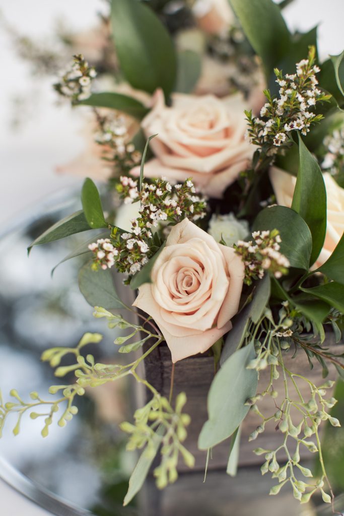 This rustic vineyard wedding is complemented beautifully with organic florals in hues of soft white, pale peach and mint. Isn’t it lovely?!