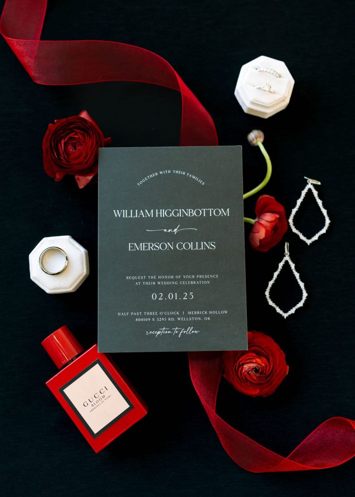 Emerson & William’s winter wedding was simply stunning! The bride wore a gorgeous gown from House of Bridal that contrasted beautifully with the vibrant pops of red throughout the day. Okie Soirée Mobile Bar Co. kept the celebration lively all night long! Here’s to the start of forever!