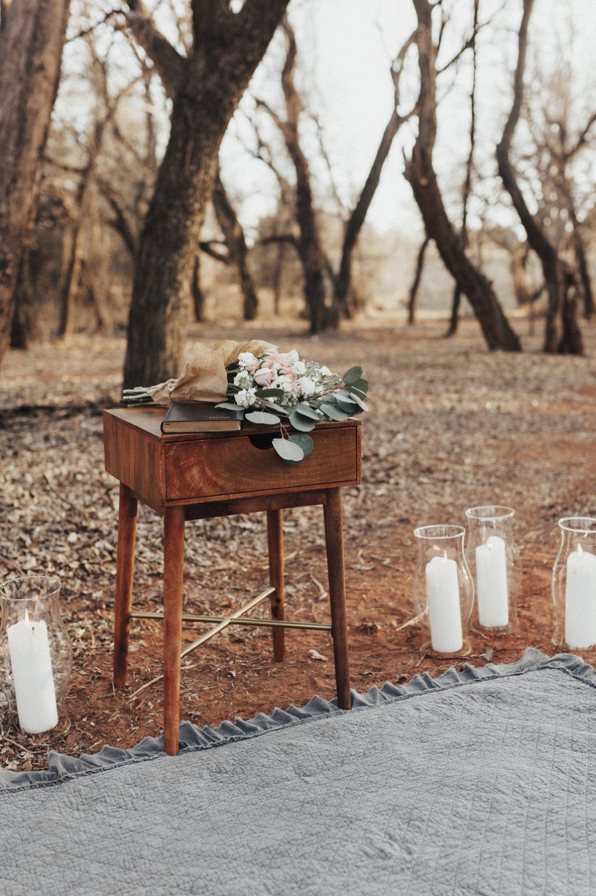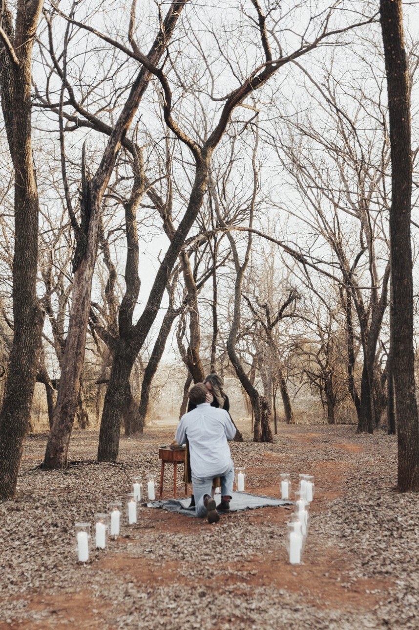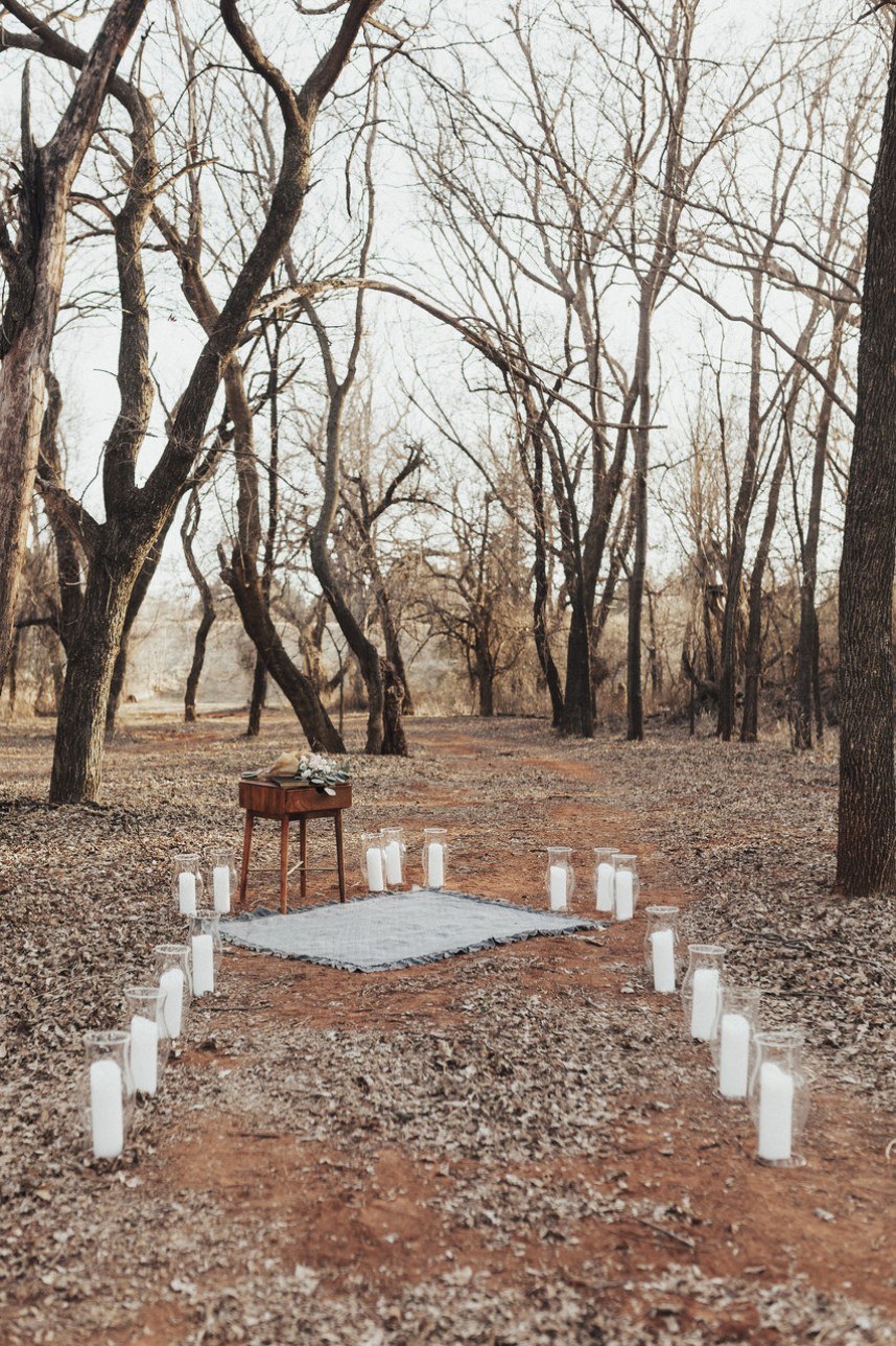 They grabbed brunch together on the day of the engagement, and even went to see a movie to calm their nerves! Later on, Jillian and Collin arrived at the venue that they had already decided would set the scene for their wedding day, and were led to a forested area, sprinkled with candles and flowers. Collin was only able to utter those four little words before Jillian could say yes! They were quickly greeted by their closest friends and family who had driven and flown from all across the country to celebrate this new chapter in their lives.