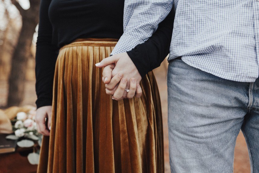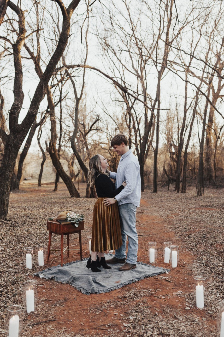 Nestled on a bed of freshly fallen leaves, Collin proposed to Jillian in the most romantic autumn scene at the gorgeously picturesque Baumberhof in Edmond. We could not be more in love with Kayley Haulmark‘s unique ability to capture the most authentically beautiful side of this sweet couple! Snuggle up with a big mug of chai tea, and keep scrolling to read more about their love story.