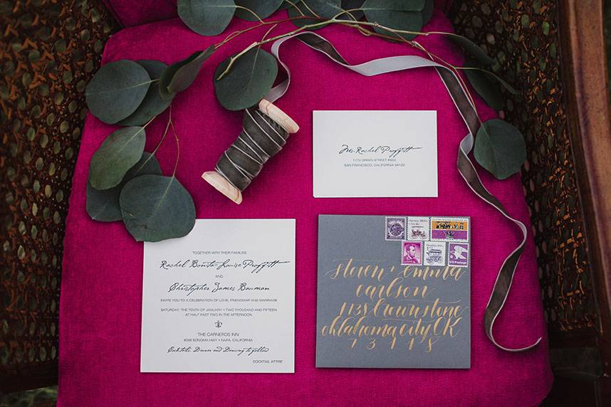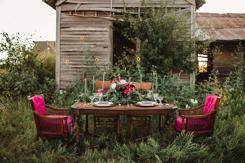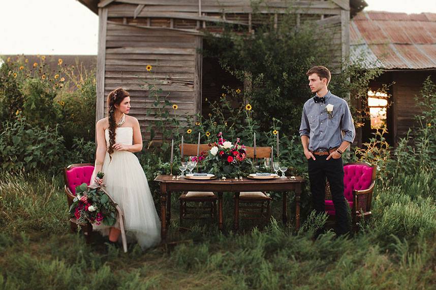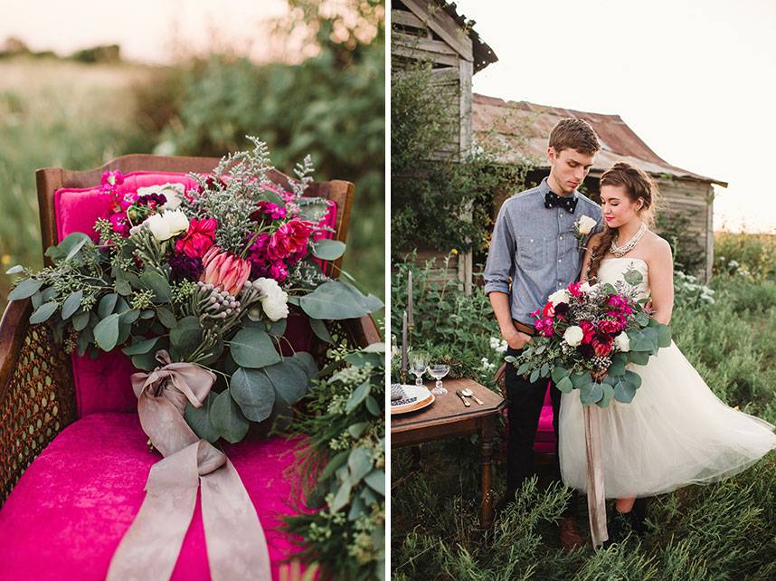 We are completely infatuated with this romantic barn wedding inspiration by Sarah Libby Photography! The McGranahan Barn was the perfect location for the rustic shoot filled with vibrant florals and such a darling couple. Chirps and Cheers crafted the classic invitations and LC Calligraphy added her touch to the addressing. Ruby’s Vintage Rentals’ vibrant pink chairs made the scene pop! Enjoy this seriously fun shoot today! Happy Tuesday!